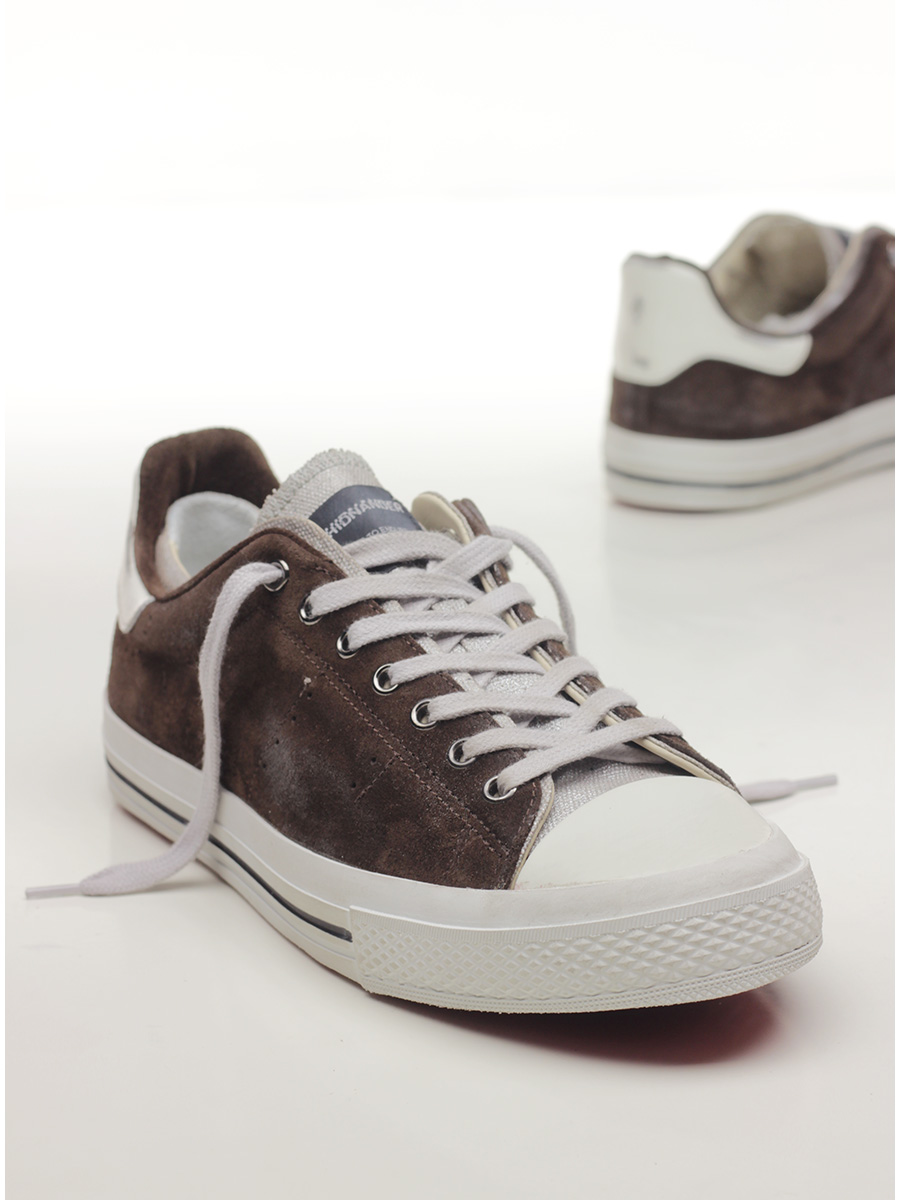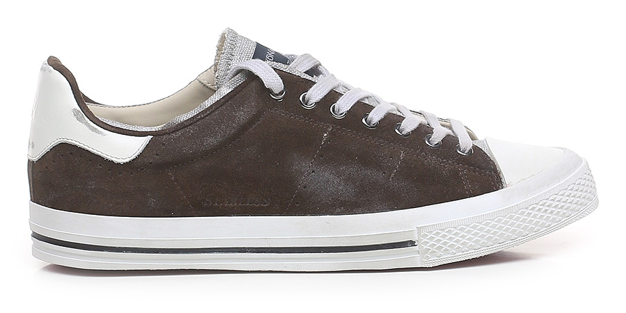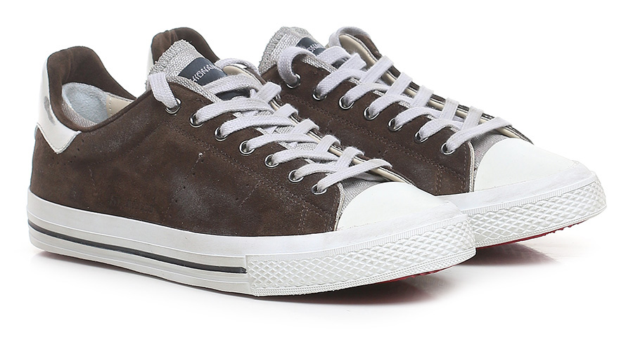Sneaker in camoscio effetto vintage con talloncino in pelle effetto vintage e suola in gomma effetto vintage. Altezza suola 30mm.