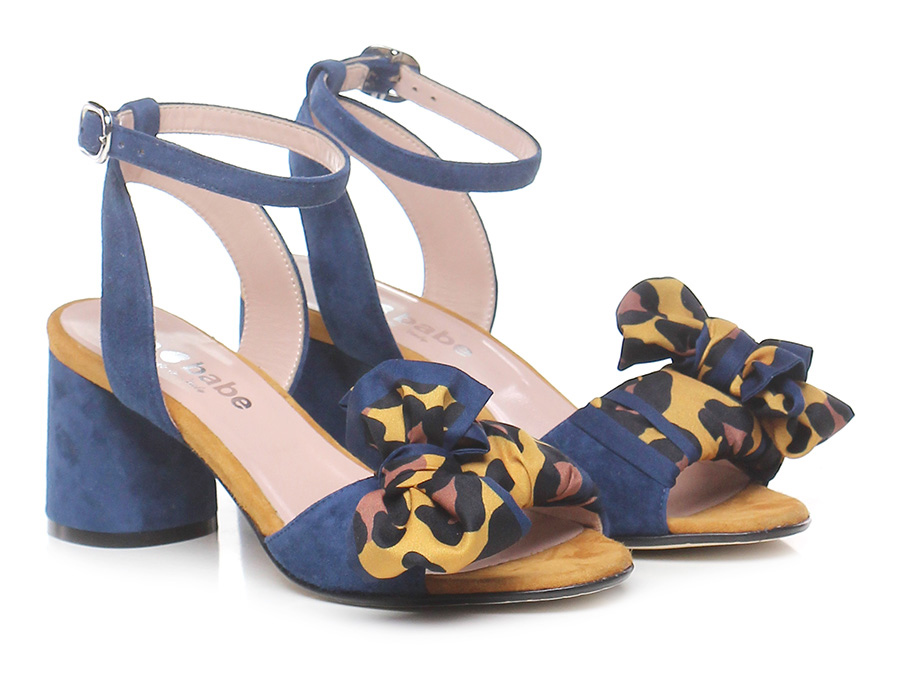 Sandalo alto in camoscio con fiocco in tessuto in seta stampato, suola in cuoio. Tacco 75, rivestito in camoscio.
