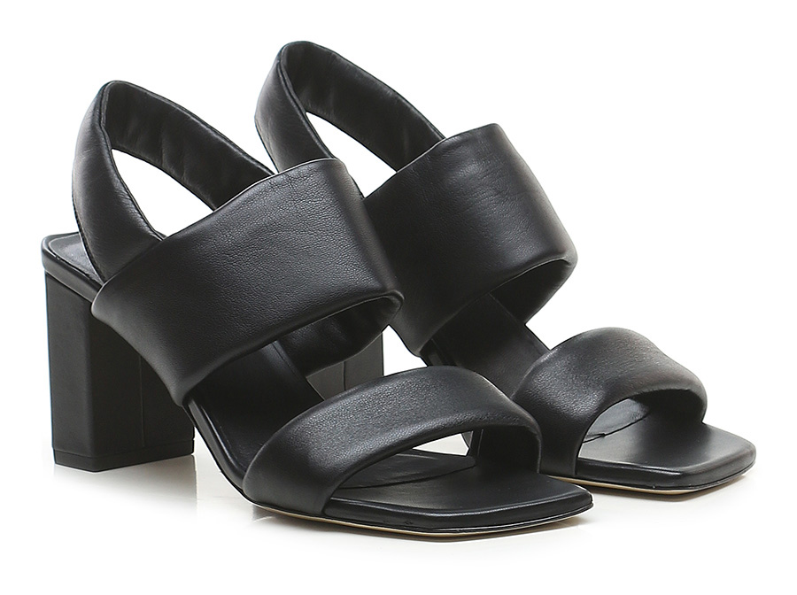Sandalo in pelle con cinturino sul retro elasticizzato. Suola in cuoio. Altezza tacco 70mm.