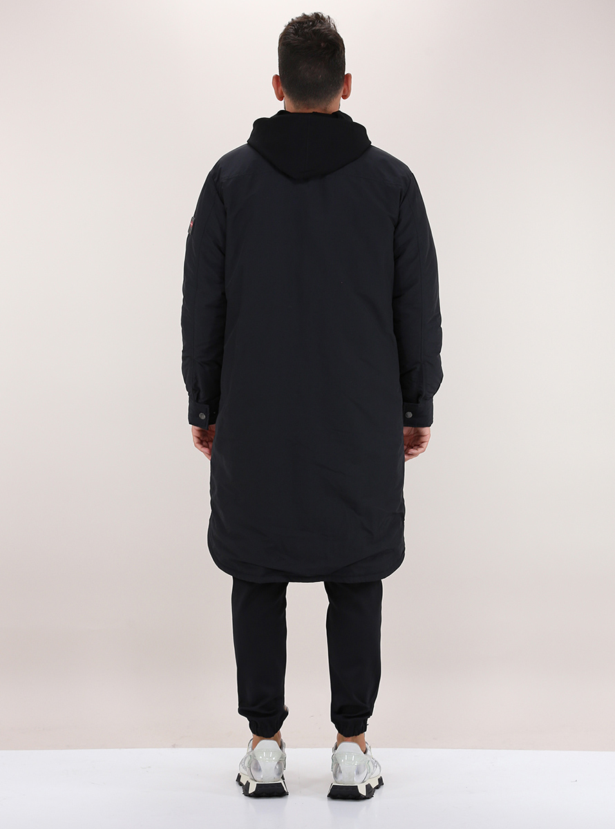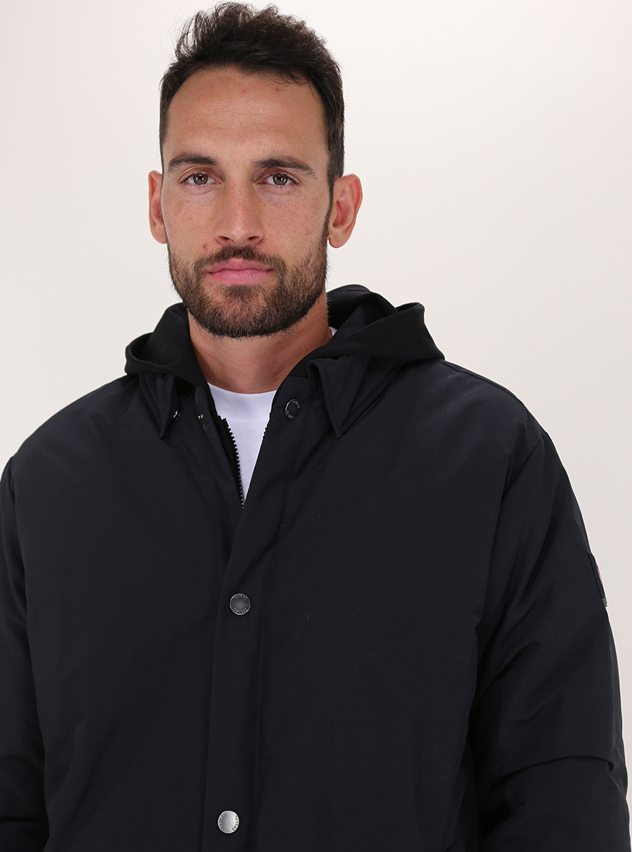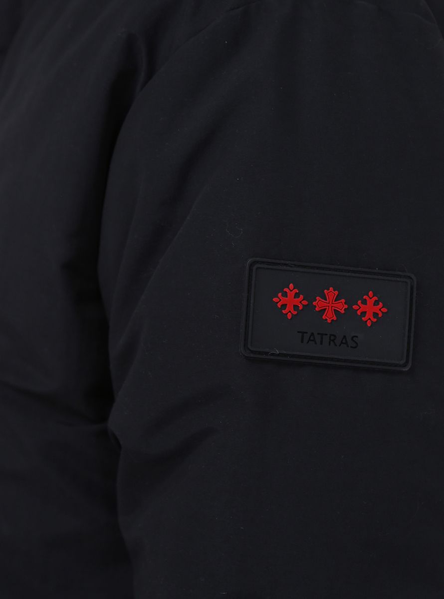 Coats Tatras imbottito in fiocco d'oca a maniche lunghe con automatico. Tasche a sacchetto con pattina e bottoni di chiusura frontali. Il modello è alto 1,80 e indossa la taglia IV.