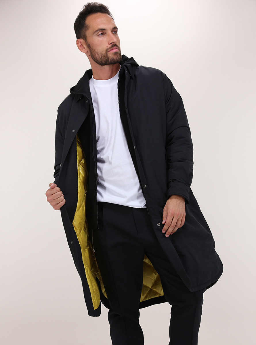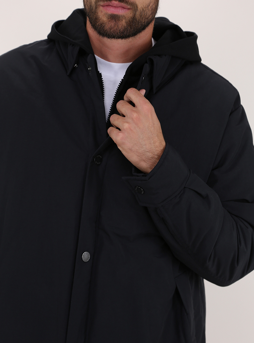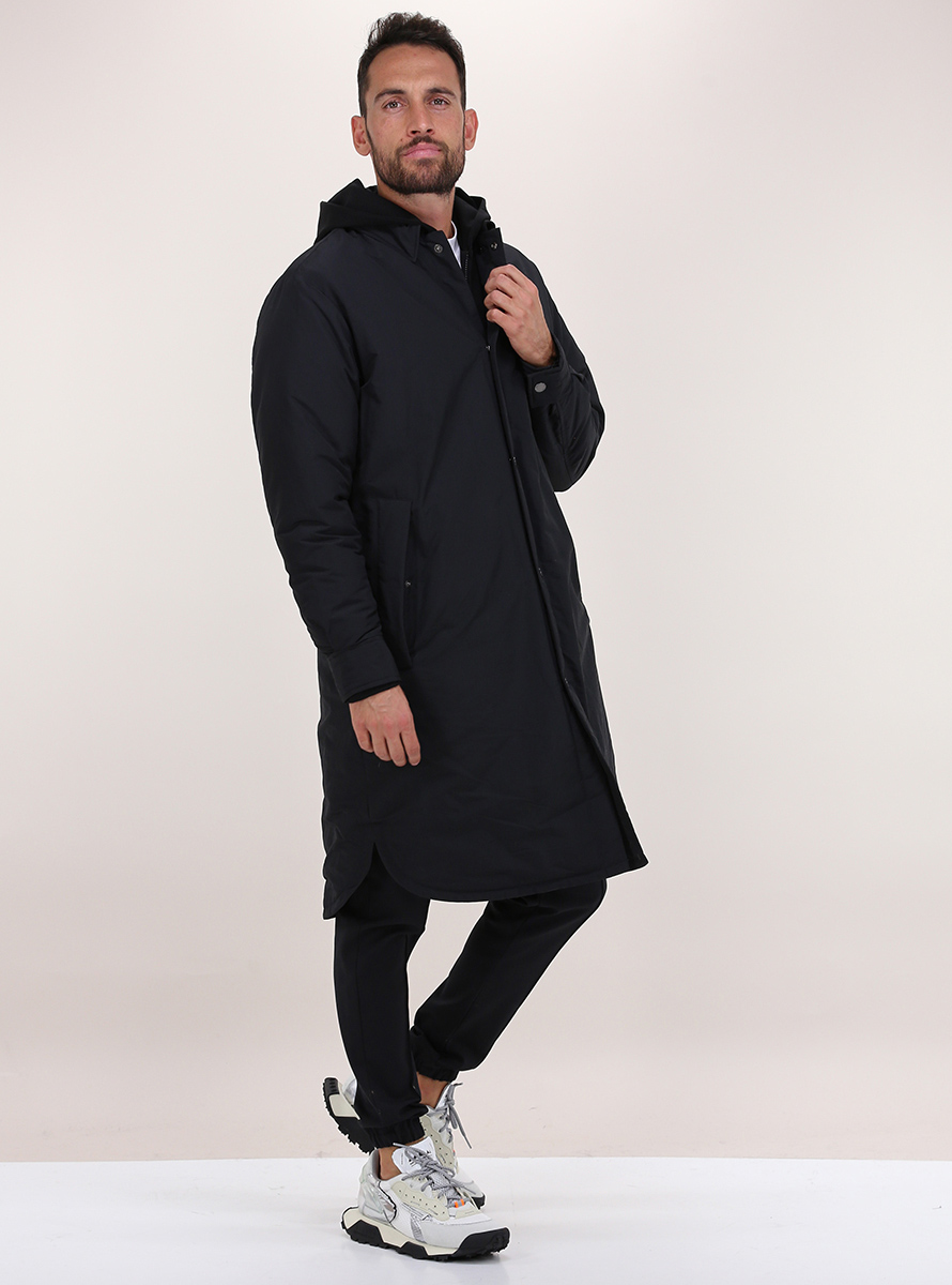 Coats Tatras imbottito in fiocco d'oca a maniche lunghe con automatico. Tasche a sacchetto con pattina e bottoni di chiusura frontali. Il modello è alto 1,80 e indossa la taglia IV.