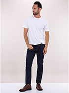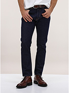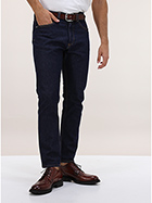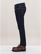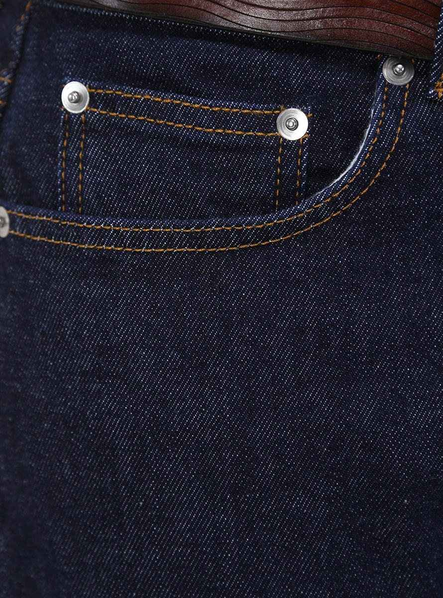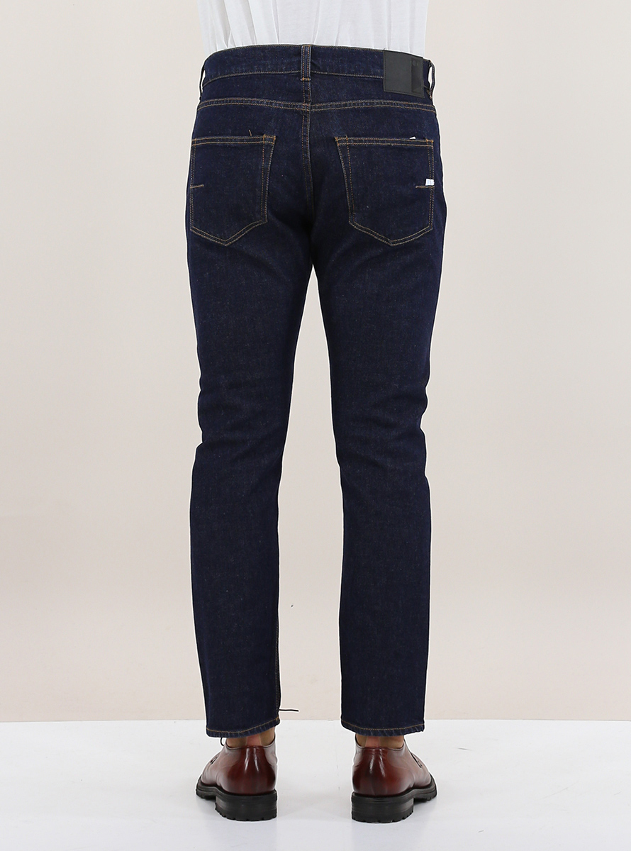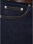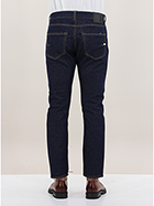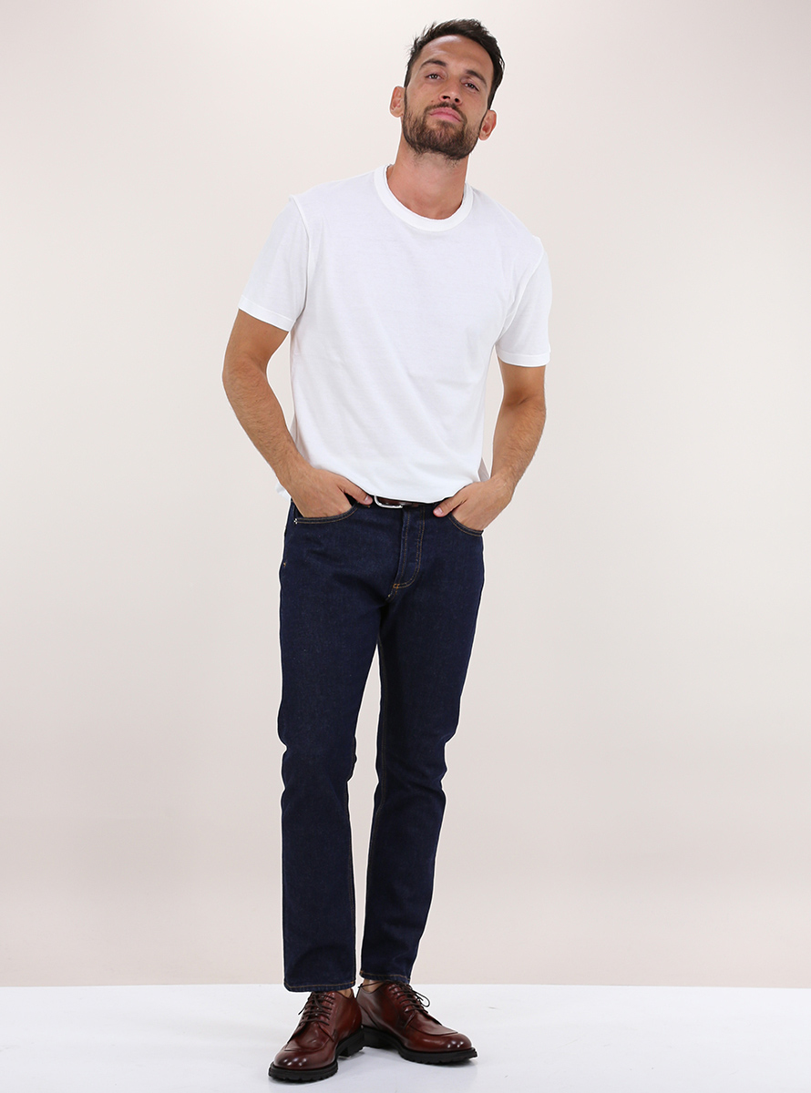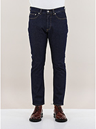 Jeans Grifoni modello "Pier" in denim di cotone stretch. Vestibilità cropped fit. Il modello è alto 1,80 e indossa la taglia 32.