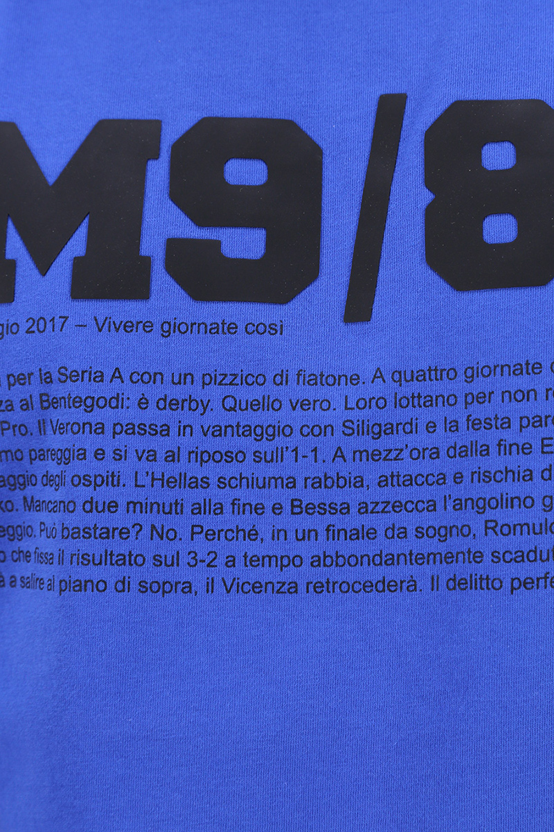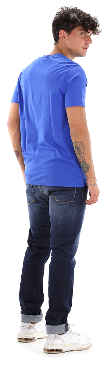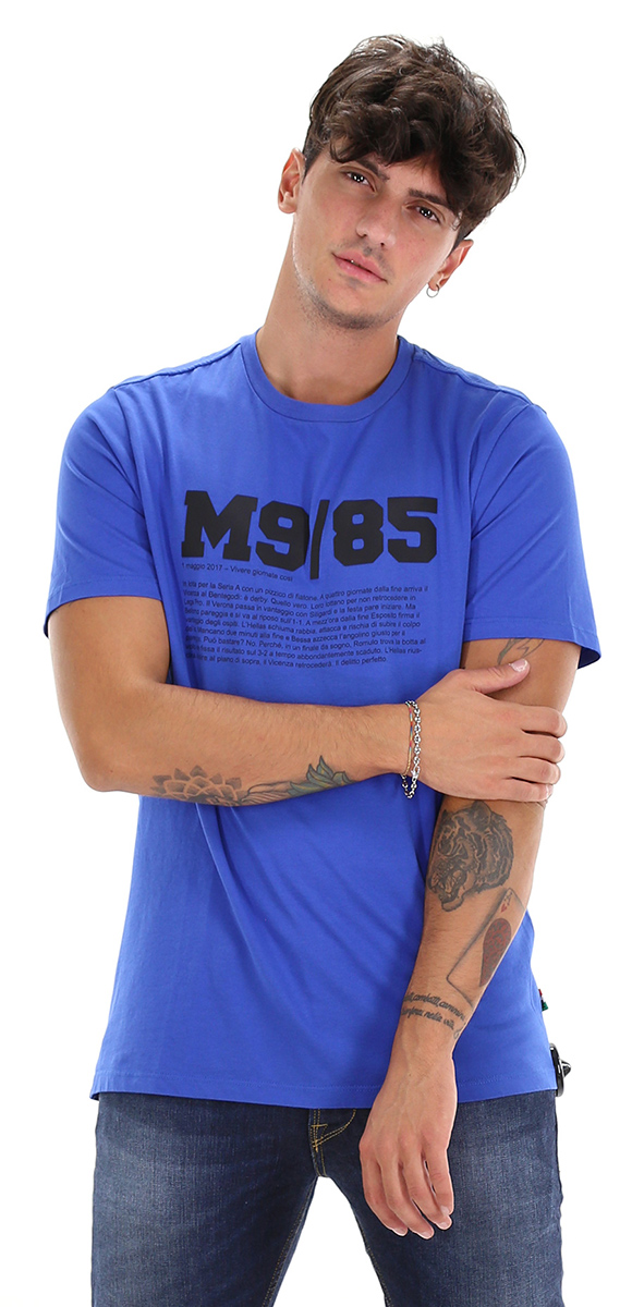 T-shirt in cotone a girocollo, manica corta con logo gommato applicato e stampa. Il modello è alto 1,82 e indossa la taglia M.