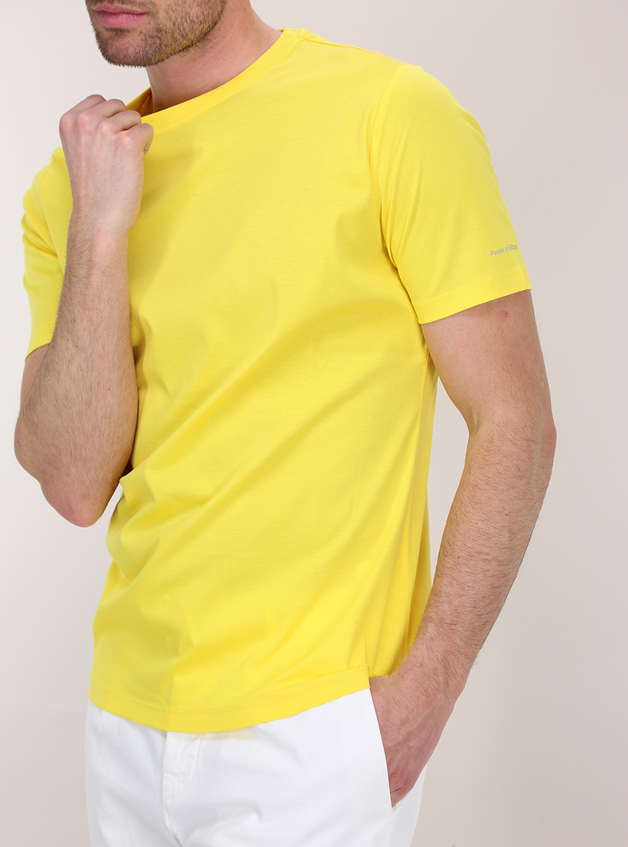 T-shirt People of Shibuya in cotone a maniche corte e collo a giro. Logo laterale e inserto catarifrangente sul retro. Il modello è alto 1.80 ed indossa la taglia M.