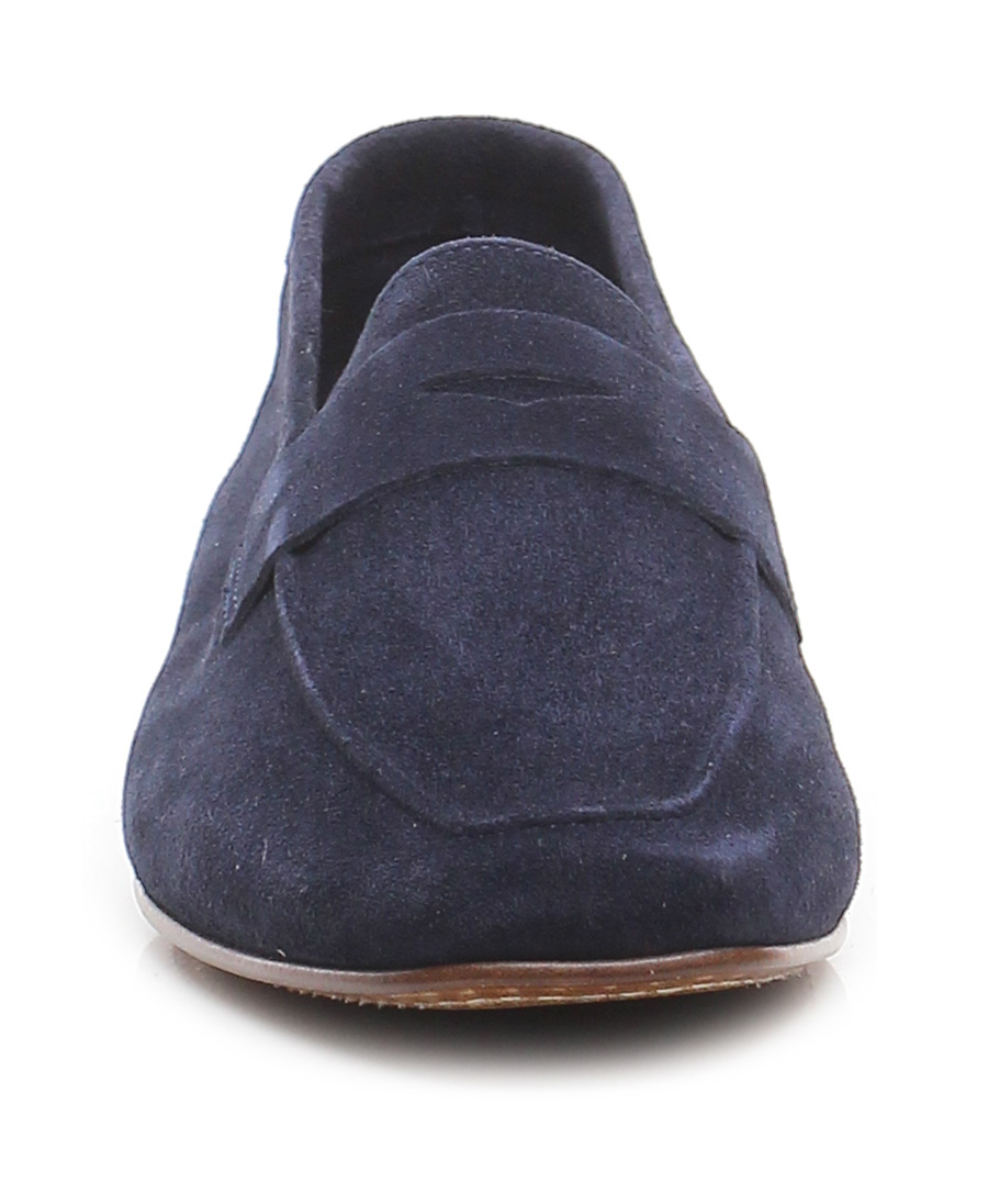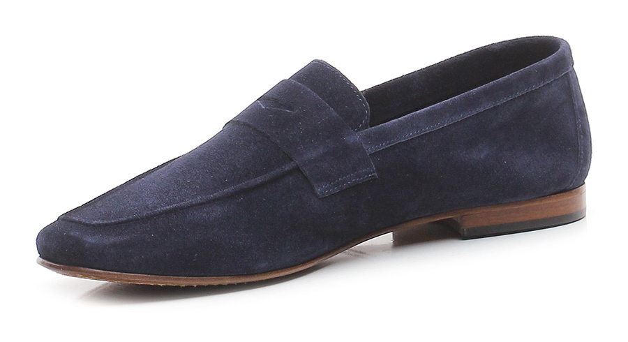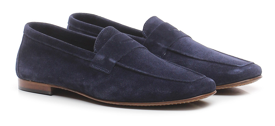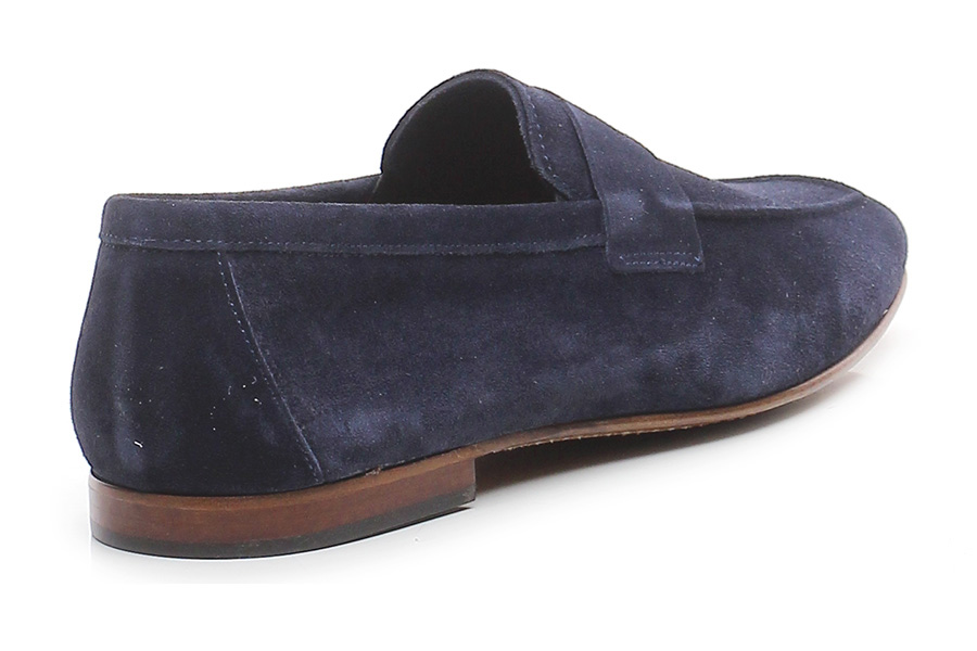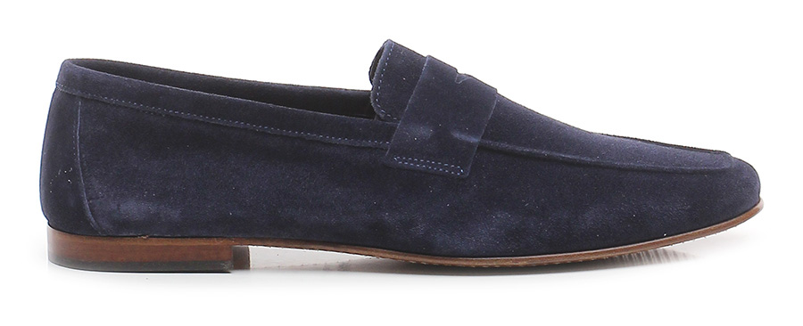 Mocassino in camoscio con inserti elasticizzati ambo i lati, suola in cuoio e gomma. Tacco 10, interno sfoderato.