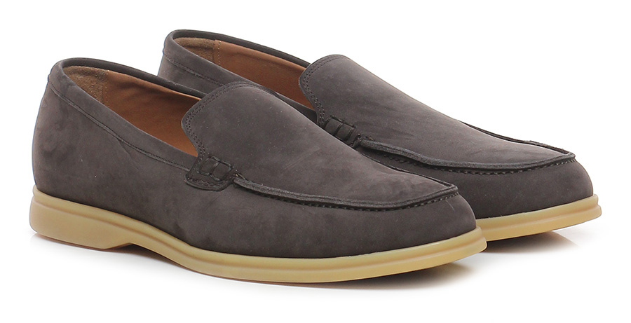 Mocassino in nabuk, suola in gomma. Tacco 20.