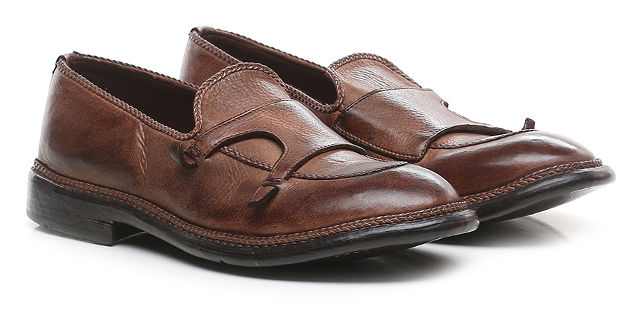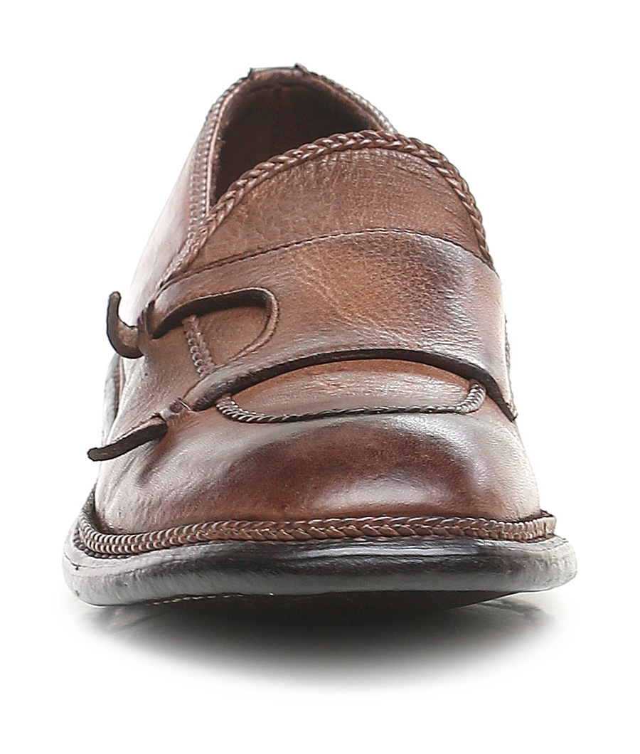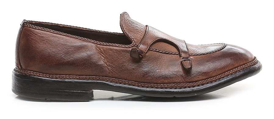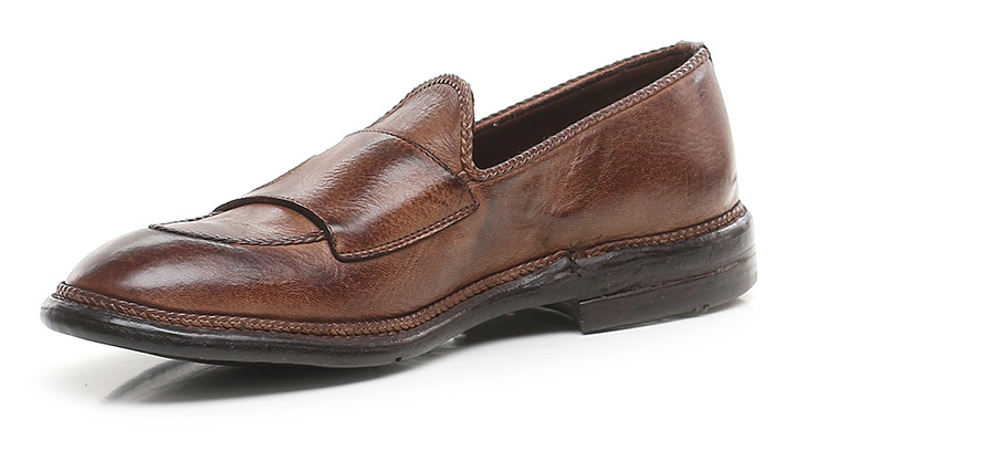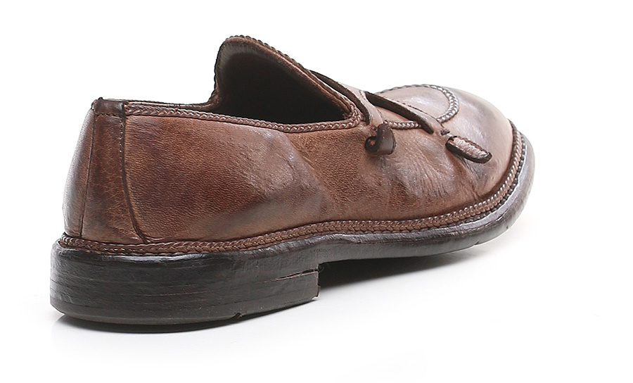 Mocassino in pelle effetto vintage con suola in cuoio. Altezza tacco 25mm.