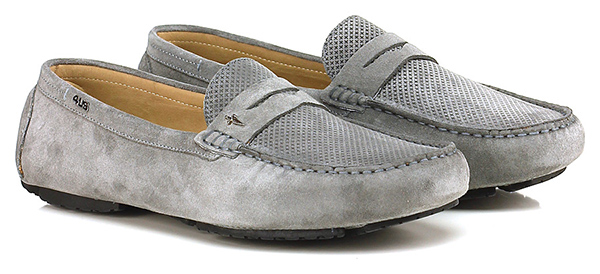 Mocassino in camoscio e camoscio forato con suola in gomma. Tacco 15.