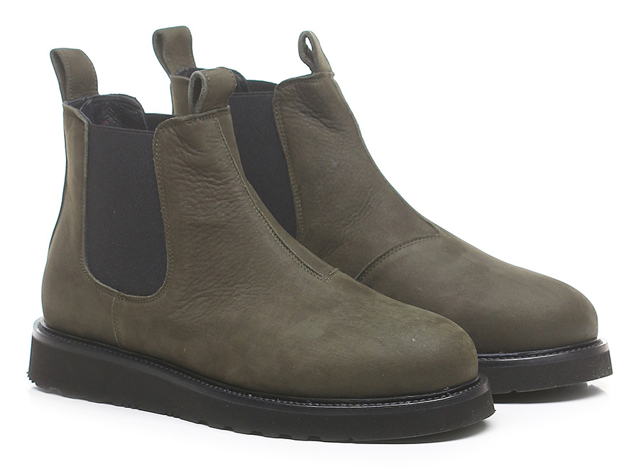 Polacco in nabuk con inserti elasticizzati laterali e suola in gomma. Altezza tacco 30mm, platform 20mm con battuta 10mm.