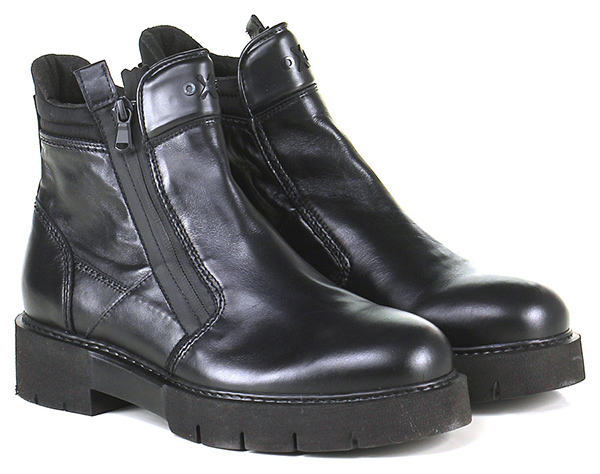 Polacco in pelle vintage e tessuto elasticizzato con zip su lato esterno e suola in gomma extra light. Tacco 60, platform 30 con battuta 30.