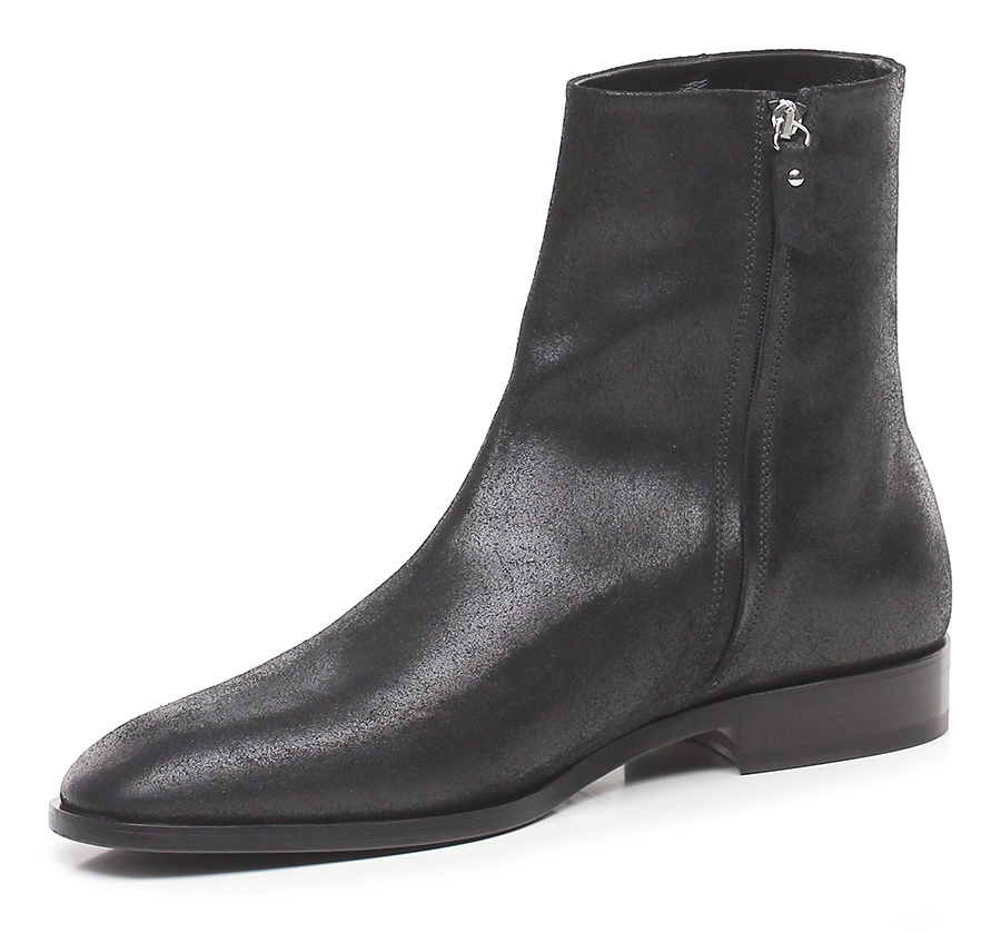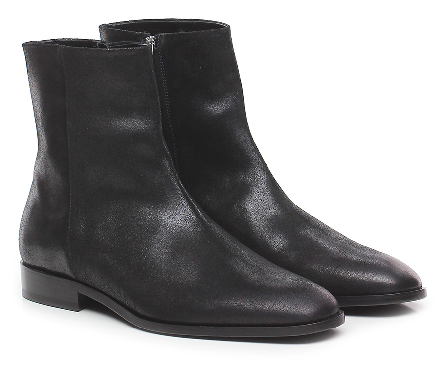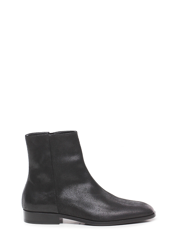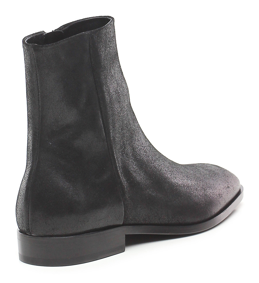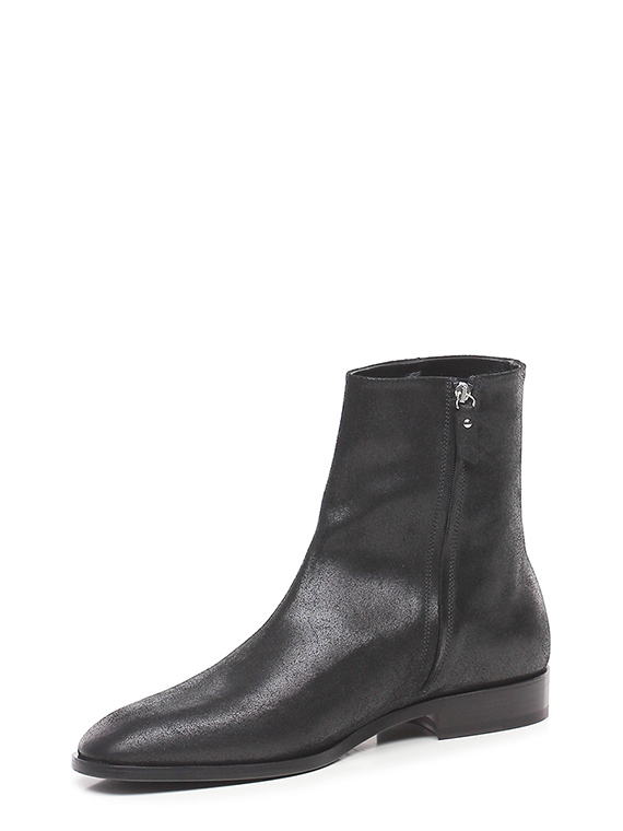 Polacco in pelle vintage effetto lucido con zip lato interno, suola in cuoio e gomma. Tacco 30, platform 15 con battuta 15.