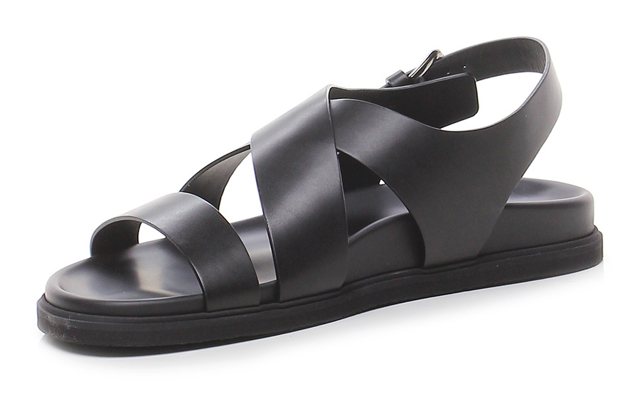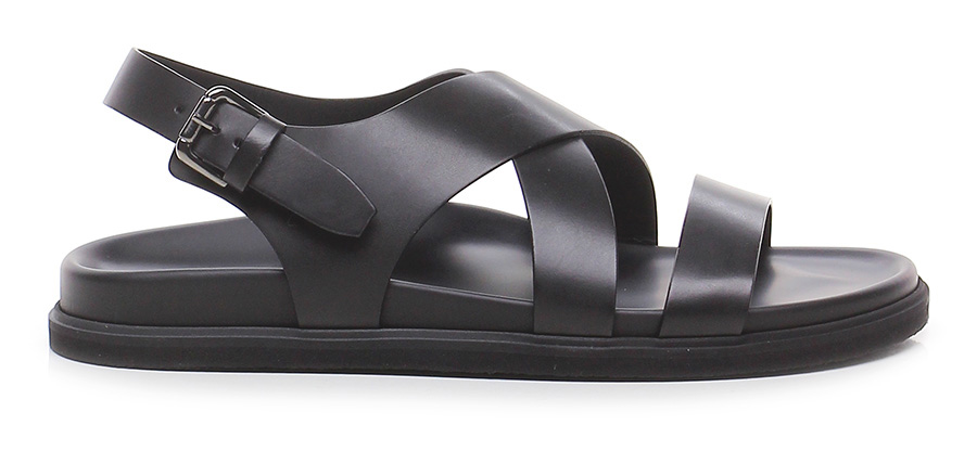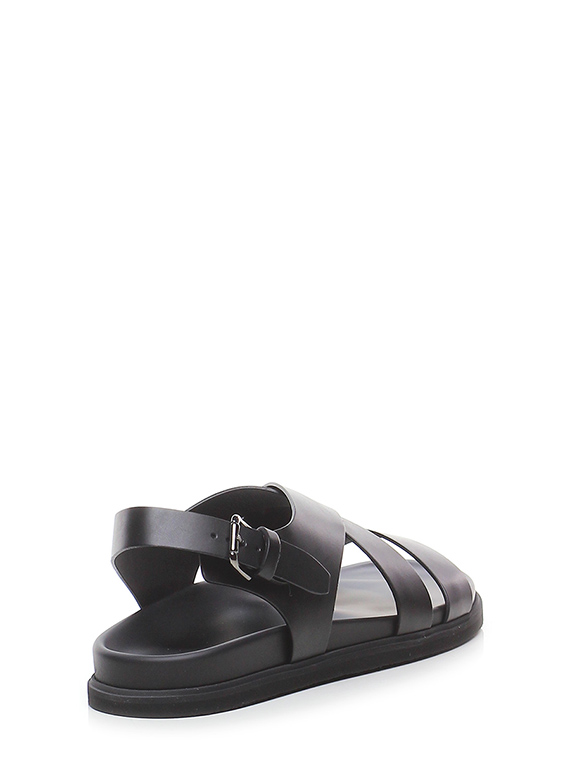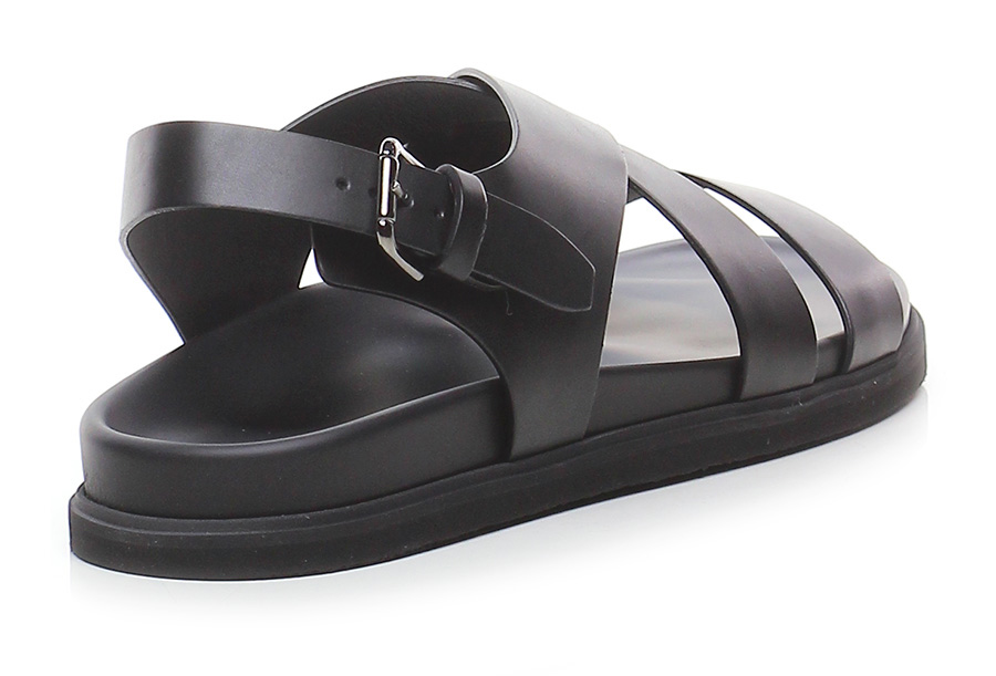 Sandalo in pelle, cinturino sul retro. Suola in gomma. Tacco 20. Plantare fussbett.