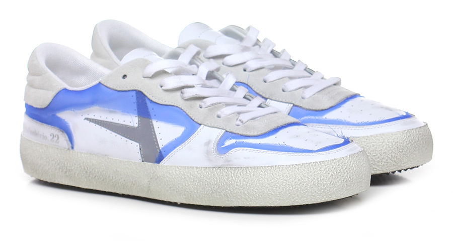 Sneaker in pelle e camoscio effetto vintage con inserti in tessuto, suola in gomma. Altezza suola: 30, platform 30.