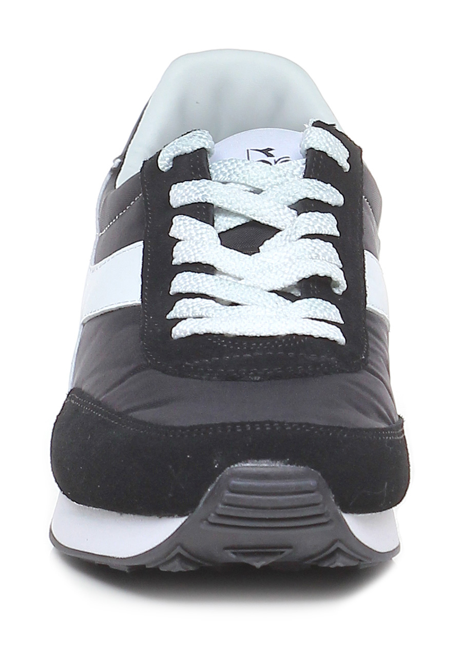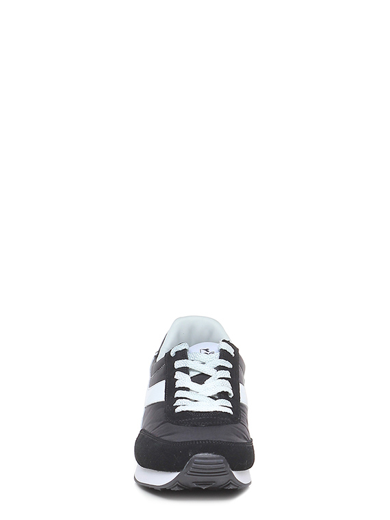 Sneaker in pelle, camoscio e tessuto, suola in gomma. Tacco 30, platform 15 con battuta 15.