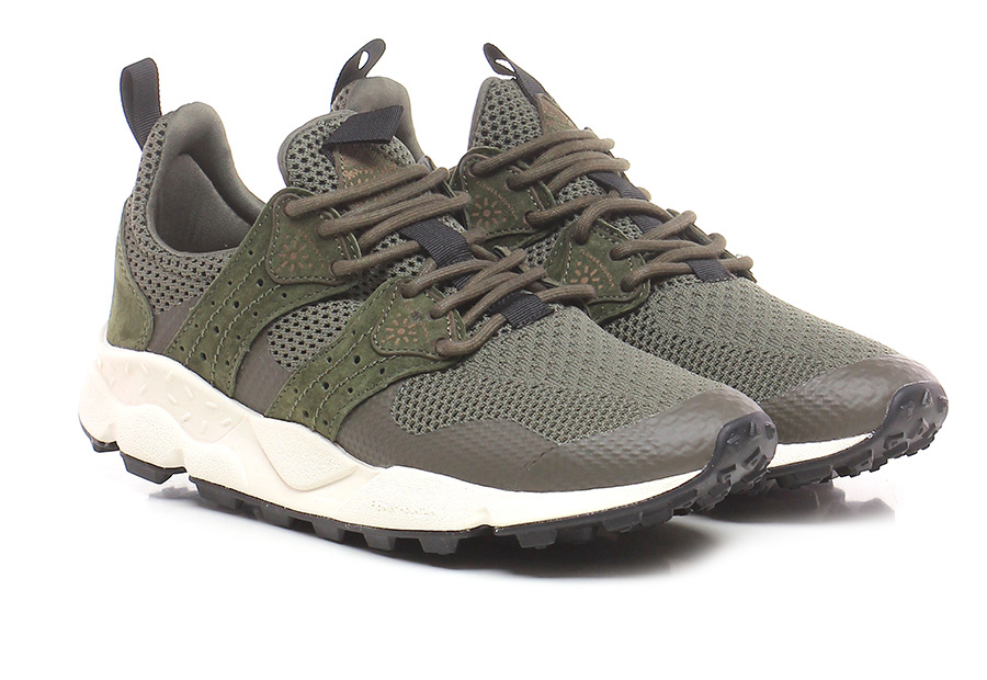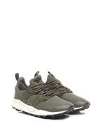 Sneaker in tessuto retina e camoscio, suola in gomma. Tacco 50, platform 30 con battuta 20.
