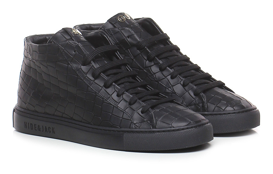 Sneaker in pelle stampa cocco, suola in gomma. Tacco 30, platform 25 con battuta 5.