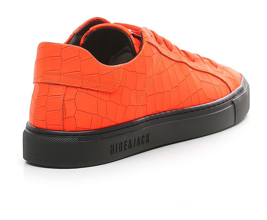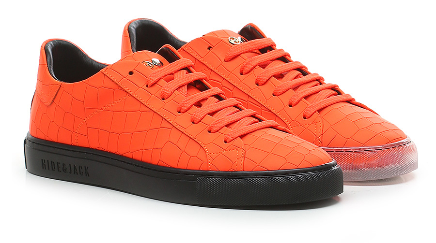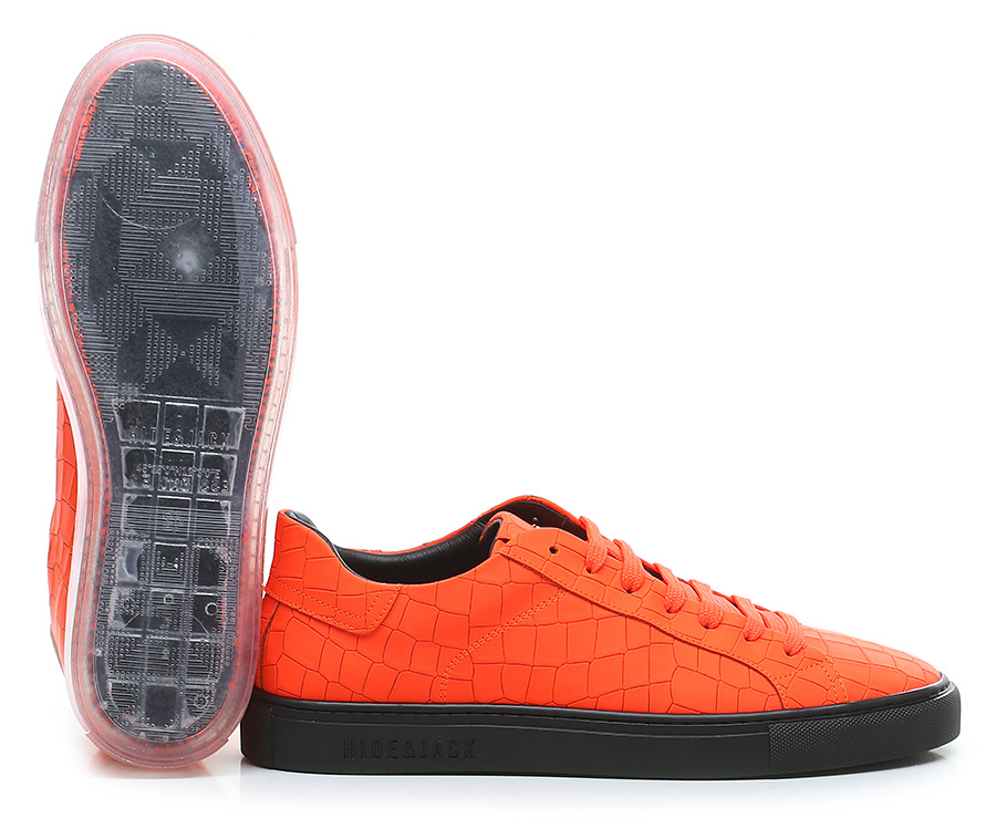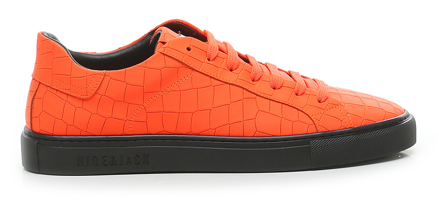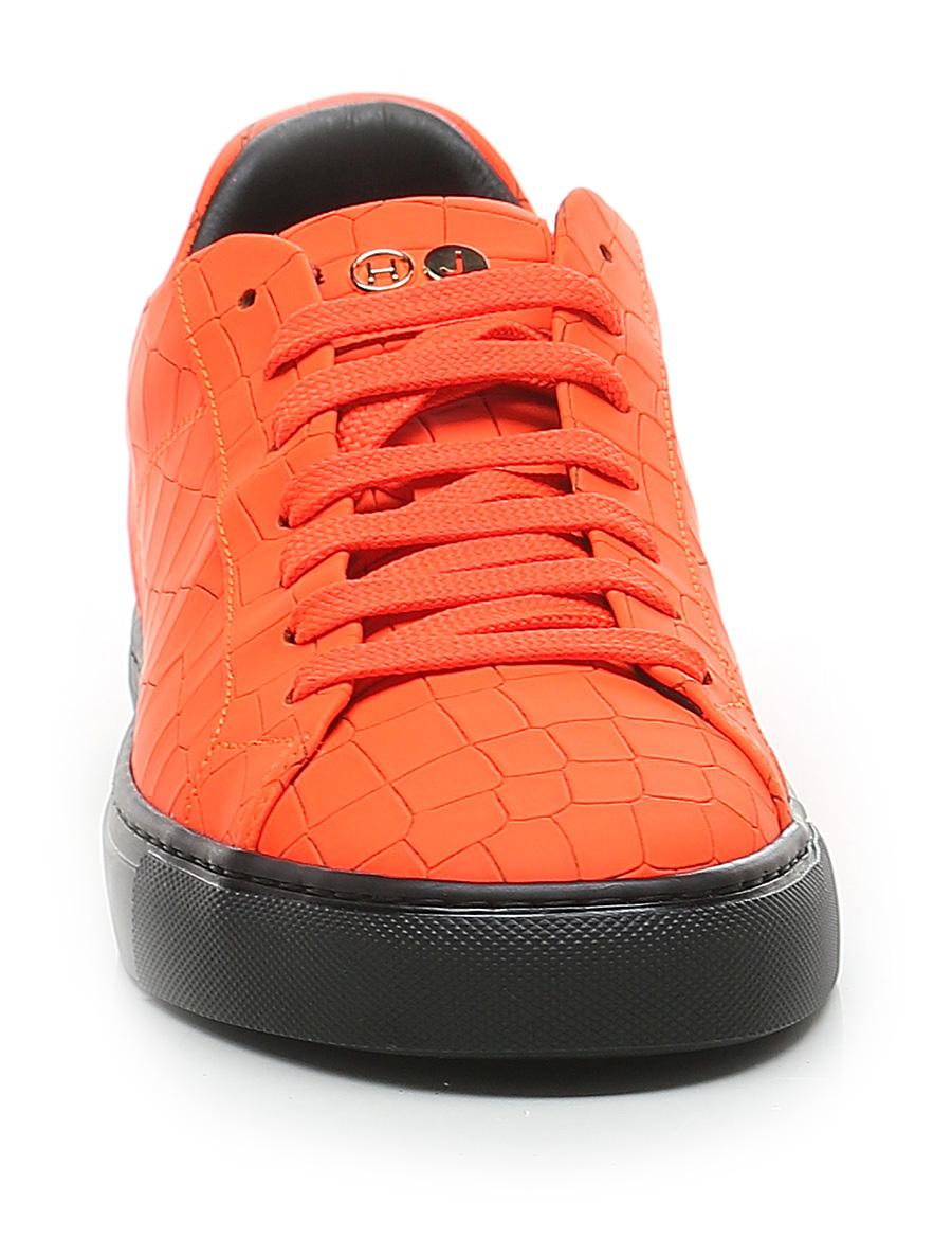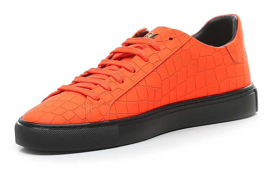 Sneaker in pelle stampa cocco con suola in gomma di colori diversi. Altezza suola 30mm, platform 25mm con battuta 5mm.