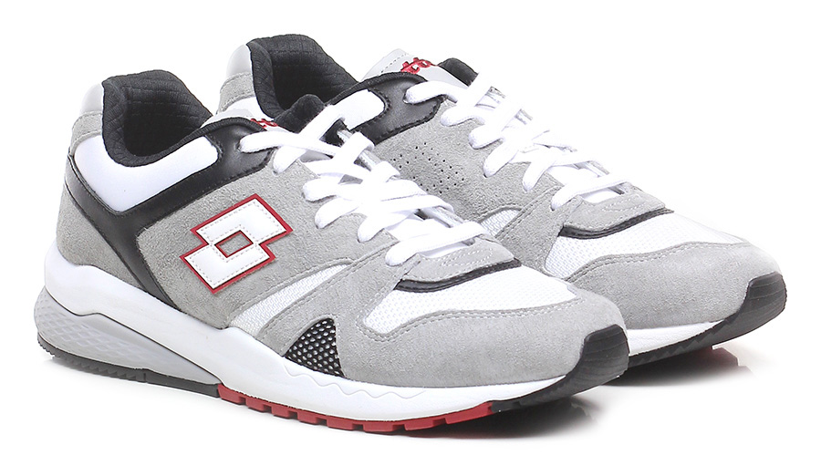 Sneaker in pelle, camoscio e tessuto lavorato, suola in gomma. Tacco 40, platform 20 con battuta 20.