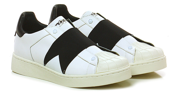 Sneaker in pelle con inserto elasticizzato frontale e suola in gomma. Tacco 35, platform 25 con battuta 10.