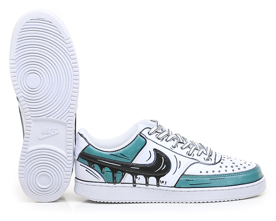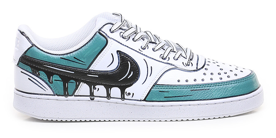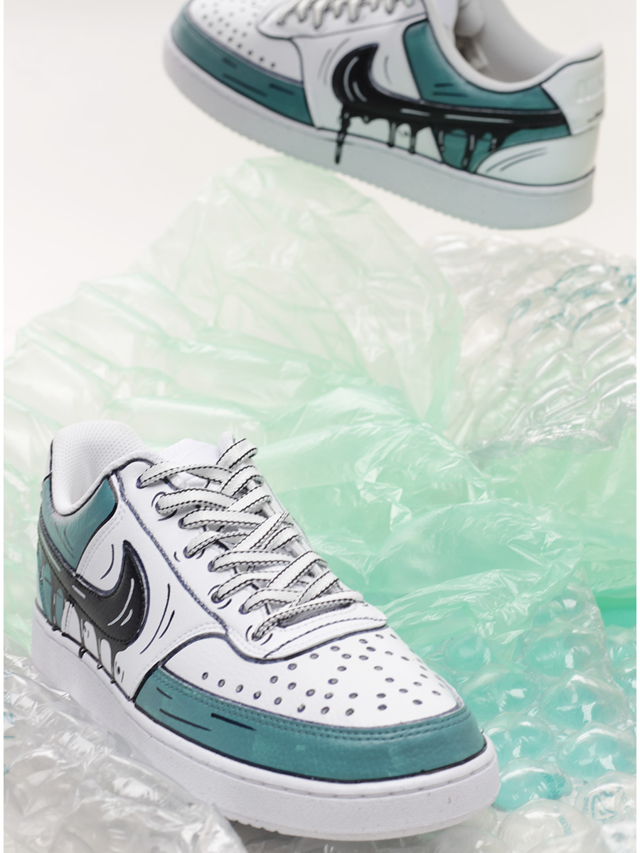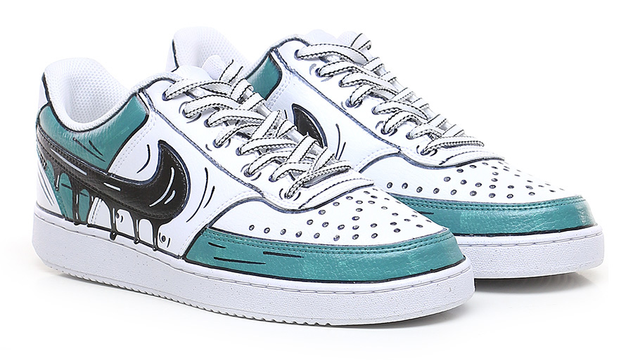 Sneaker in pelle con dettagli dipinti a mano e suola in gomma. Altezza tacco 30mm, platform 20mm con battuta di 10mm.
