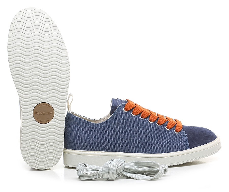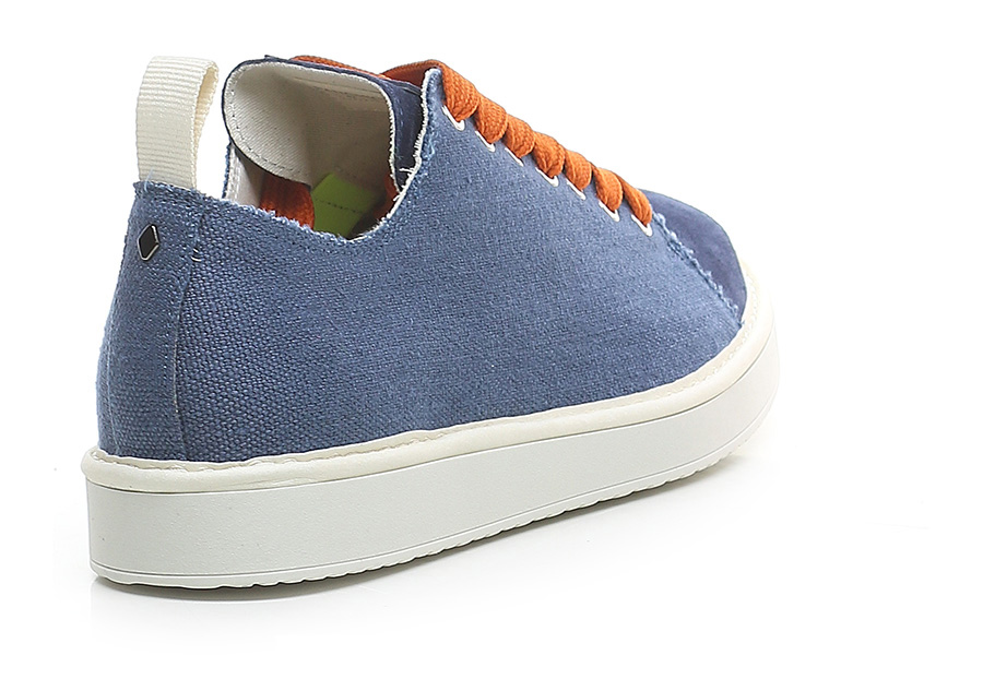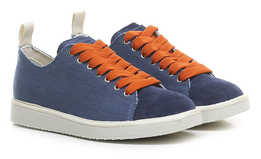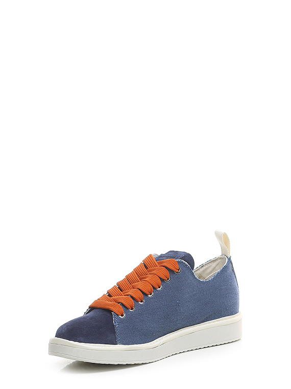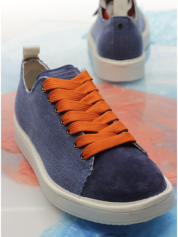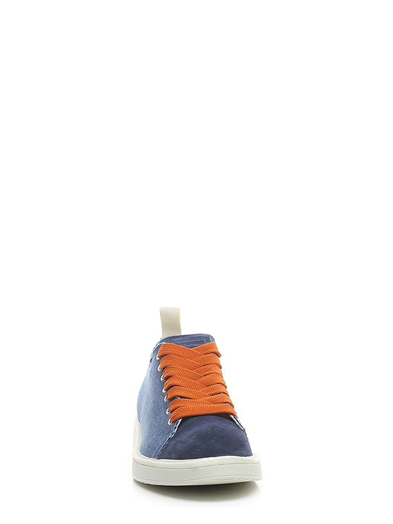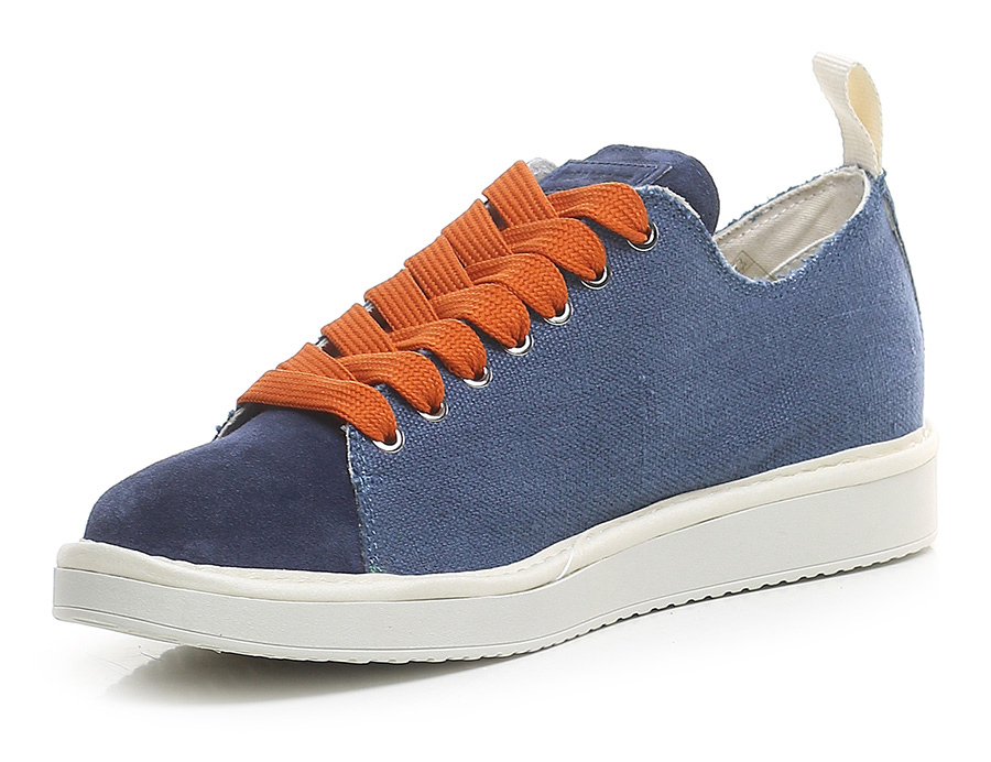 Sneker in tessuto e camoscio con suola in gomma. Altezza tacco 30mm, platform 20mm con battuta 10mm.