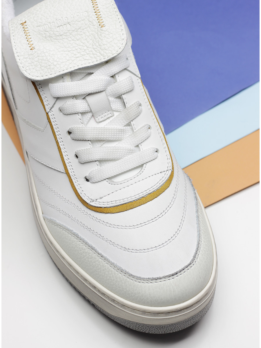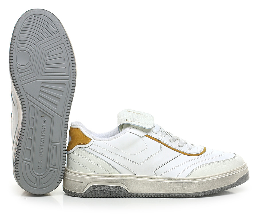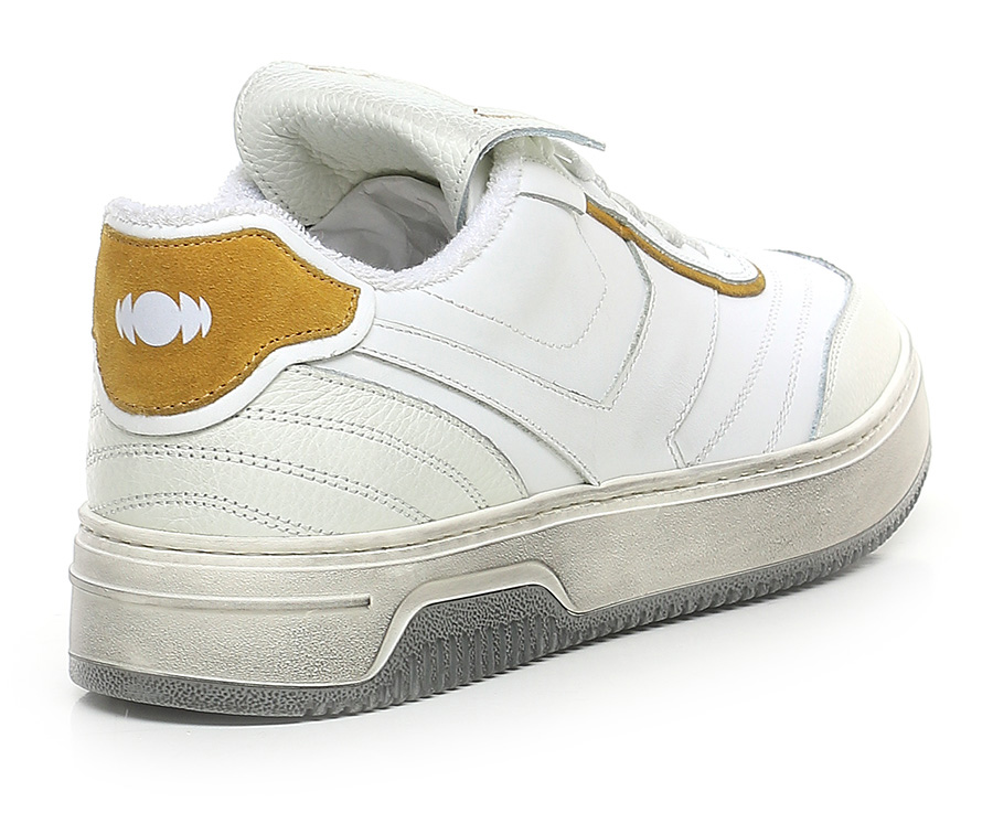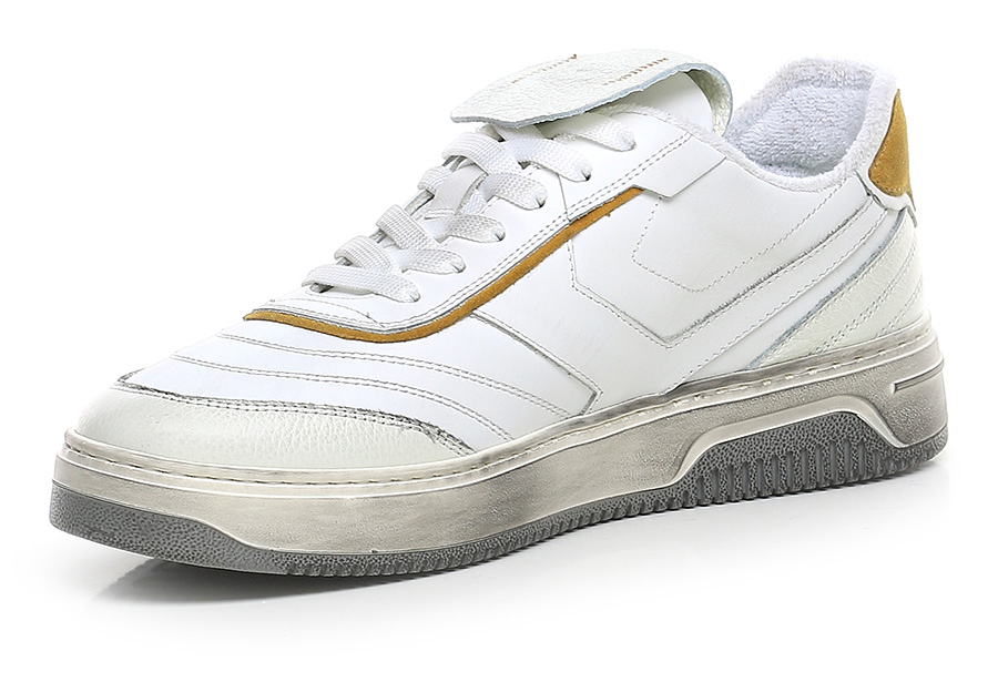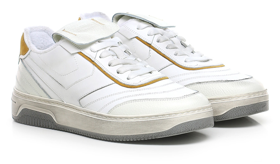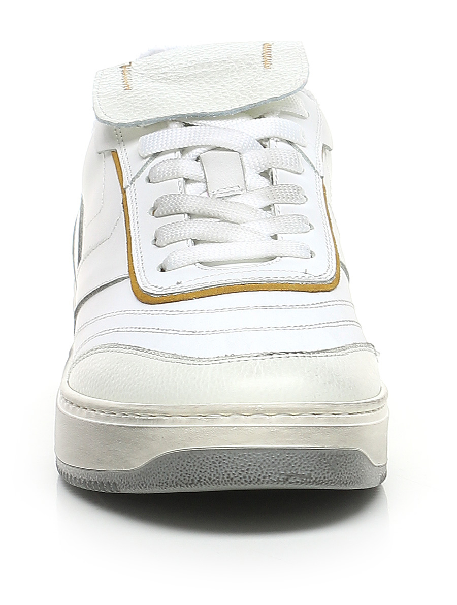 Sneaker in pelle effetto vintage con talloncino in camoscio vintage e suola in gomma effetto vintage. Altezza tacco 40mm, platform 30mm con battuta 10mm.