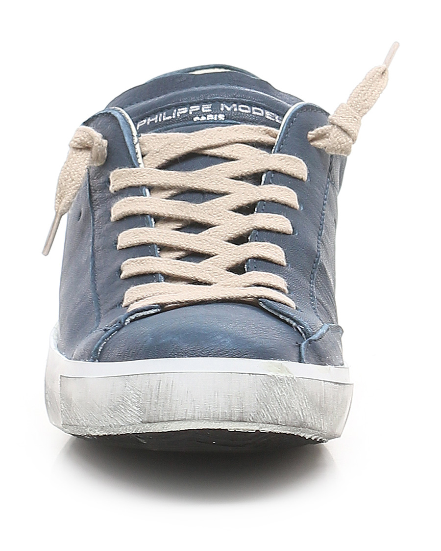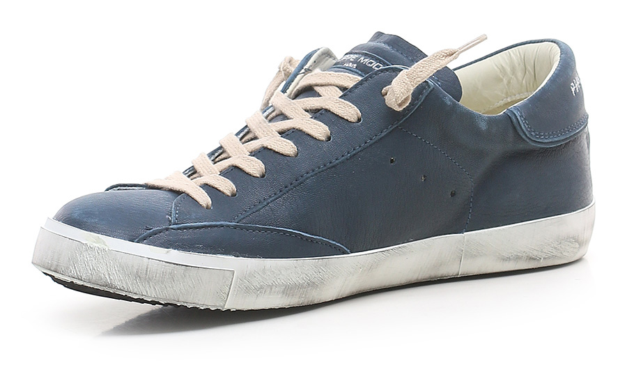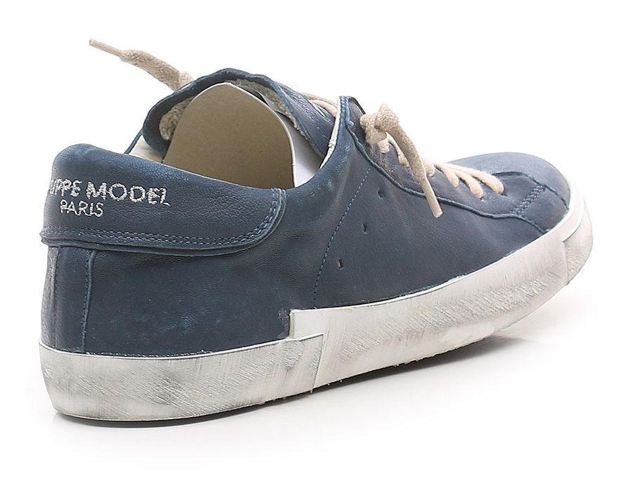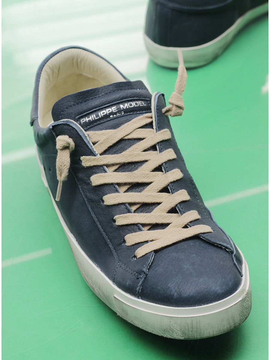 Sneaker in pelle delavè effetto vintage con suola in gomma effetto vintage. Altezza suola 35mm, platform 25mm con battuta 10mm.