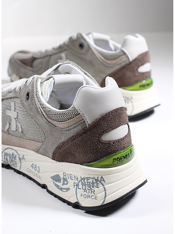 Premiata, marchio sinonimo di avanguardia e espressività, nasce con un solo obiettivo: essere il compagno di viaggio ideale di chi detesta i cliché e crede nella libertà. Le calzature Premiata, simbolo di creatività estrema, sono realizzate artigianalmente modellando la materia partendo dal bianco, che dona grande libertà di plasmare le forme. La scarpa Premiata, realizzata con grande abilità manuale e minuziosa cura dei dettagli, è caratterizzata da eleganza, comodità e da un design inconfondibile.