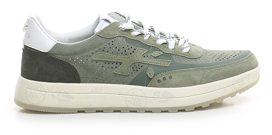 Premiata, marchio sinonimo di avanguardia e espressività, nasce con un solo obiettivo: essere il compagno di viaggio ideale di chi detesta i cliché e crede nella libertà. Le calzature Premiata, simbolo di creatività estrema, sono realizzate artigianalmente modellando la materia partendo dal bianco, che dona grande libertà di plasmare le forme. La scarpa Premiata, realizzata con grande abilità manuale e minuziosa cura dei dettagli, è caratterizzata da eleganza, comodità e da un design inconfondibile.