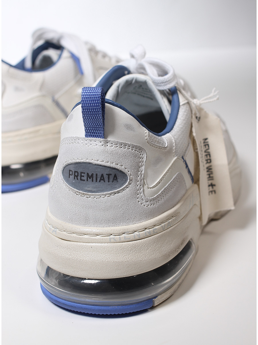 Premiata, marchio sinonimo di avanguardia e espressività, nasce con un solo obiettivo: essere il compagno di viaggio ideale di chi detesta i cliché e crede nella libertà. Le calzature Premiata, simbolo di creatività estrema, sono realizzate artigianalmente modellando la materia partendo dal bianco, che dona grande libertà di plasmare le forme. La scarpa Premiata, realizzata con grande abilità manuale e minuziosa cura dei dettagli, è caratterizzata da eleganza, comodità e da un design inconfondibile.