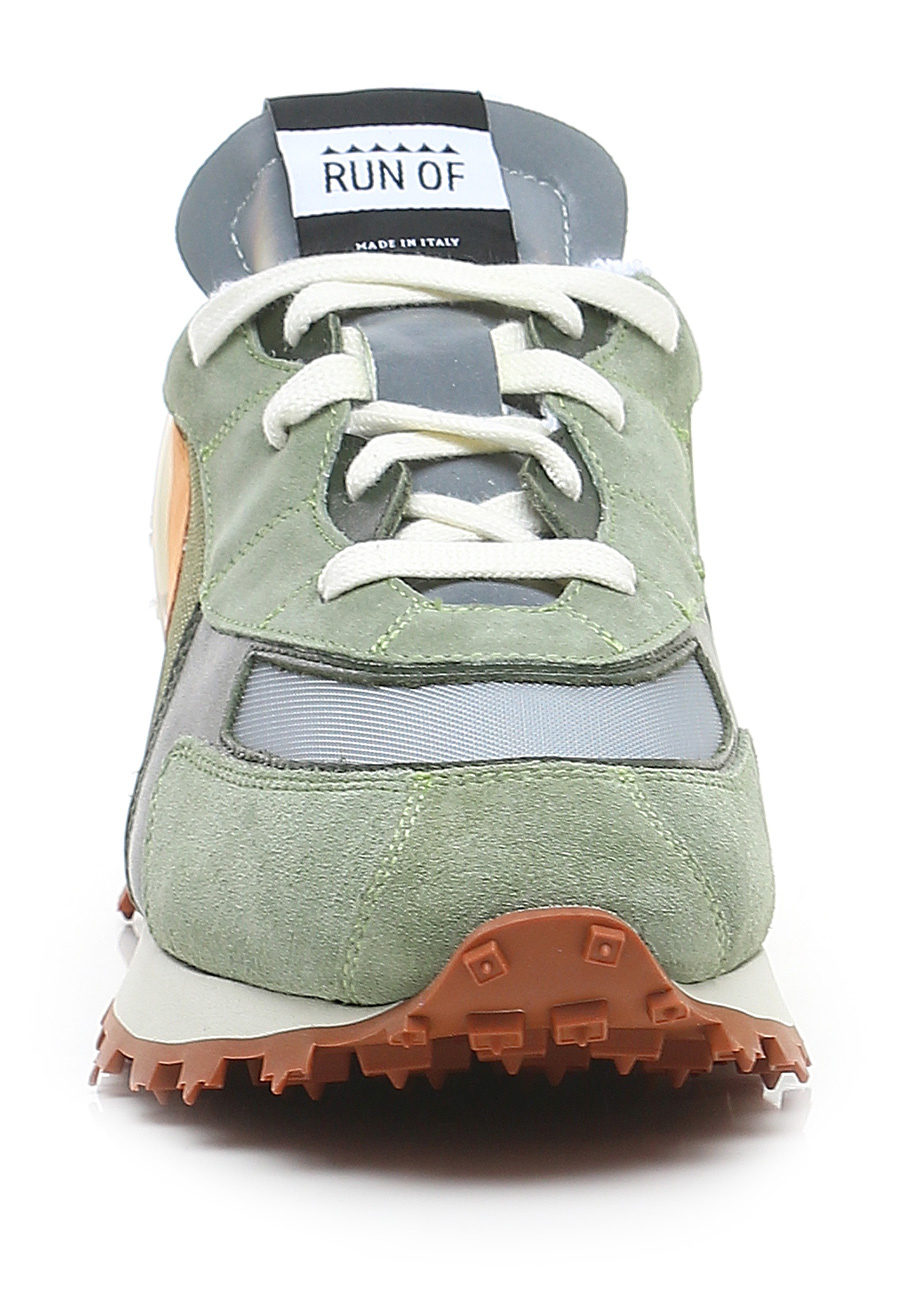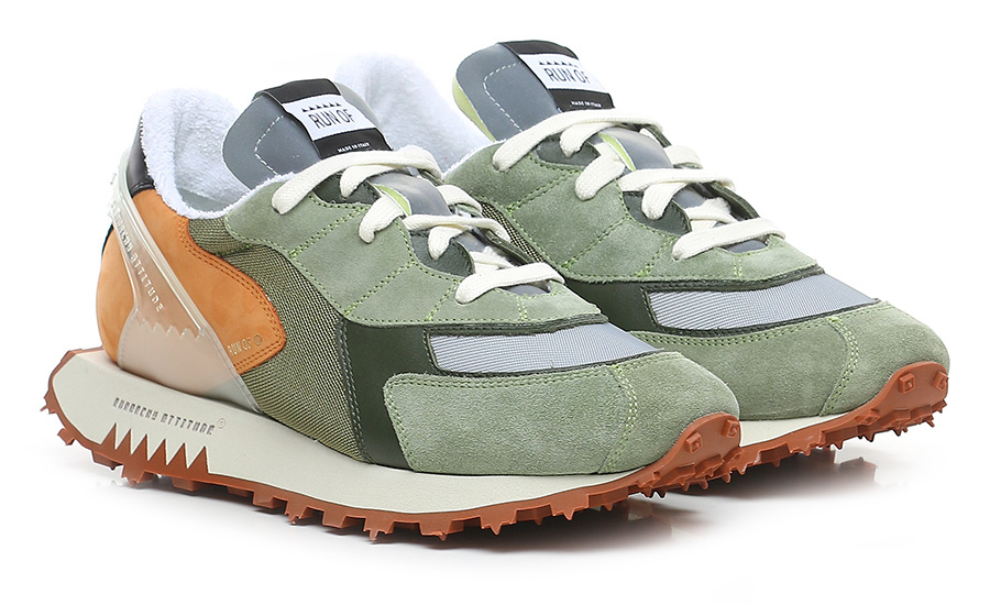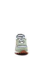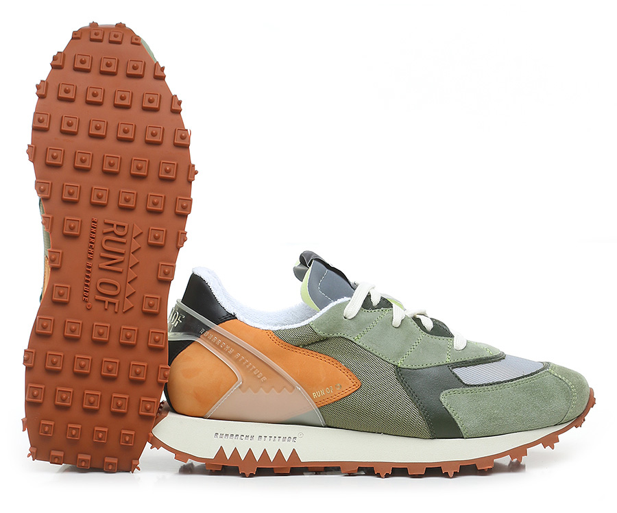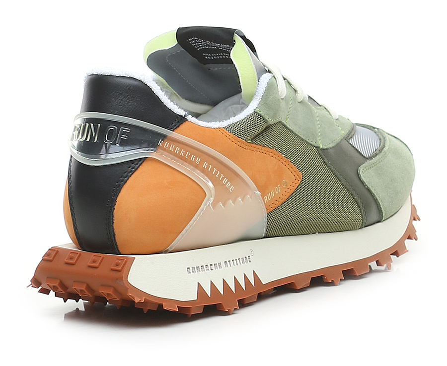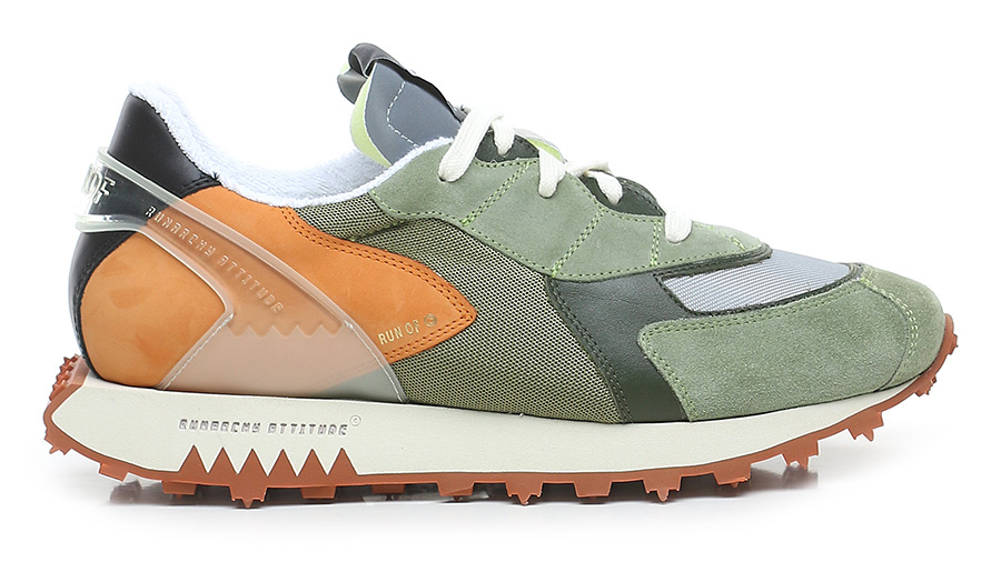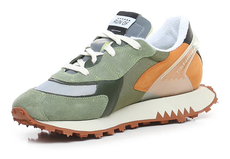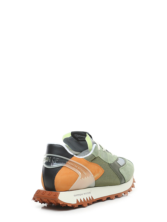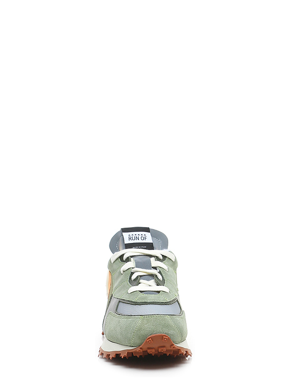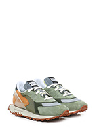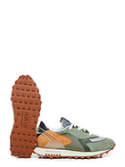 Sneaker in tessuto, camoscio, nabuk ed inserti in pelle con inserto in pvc. Suola in gomma oversize. Altezza tacco 30mm, platform 20mm con battuta 10mm.