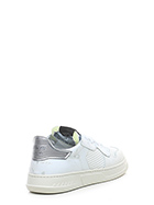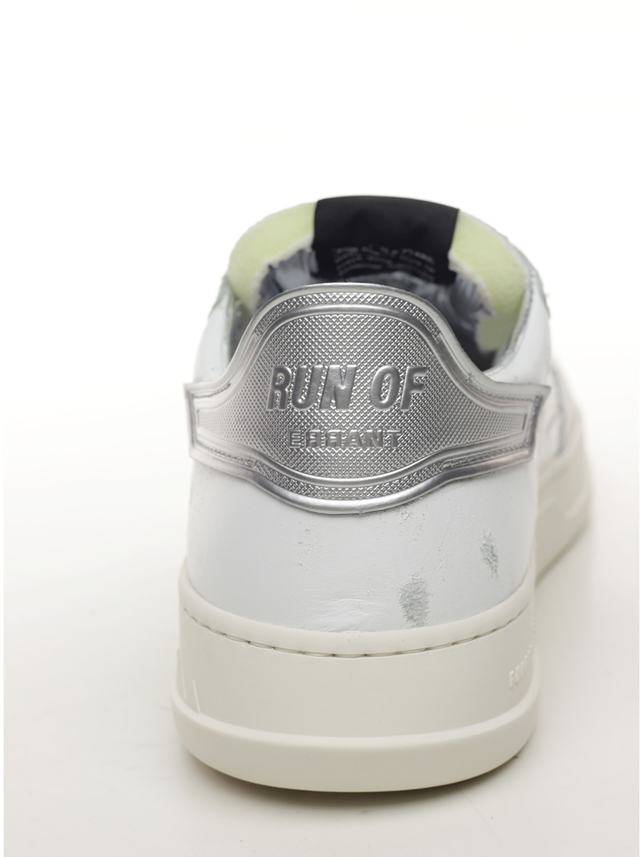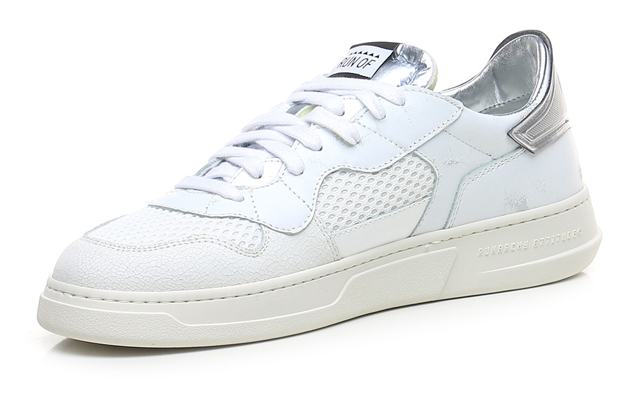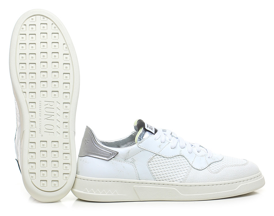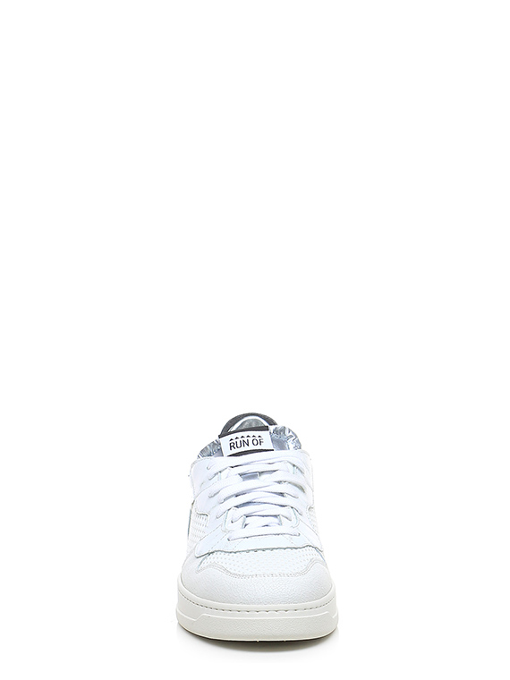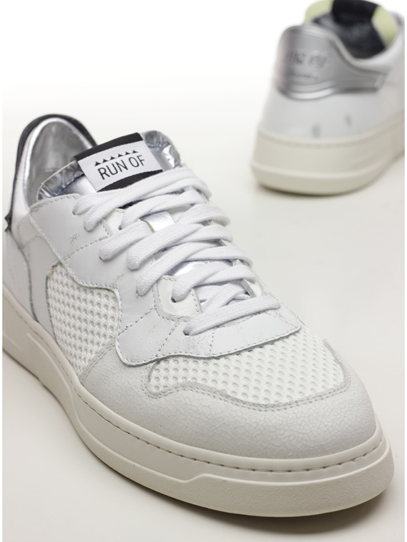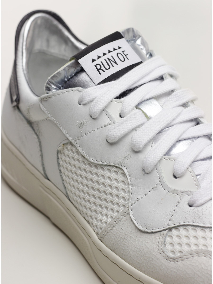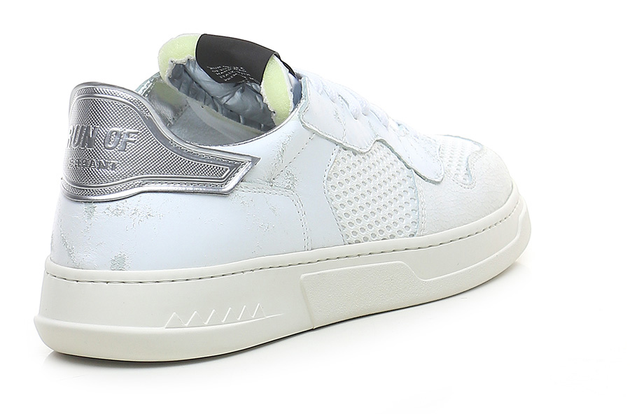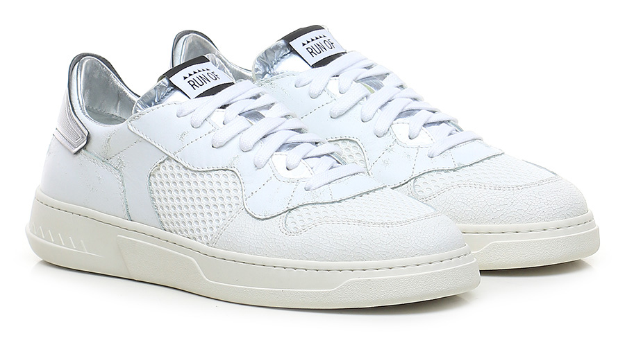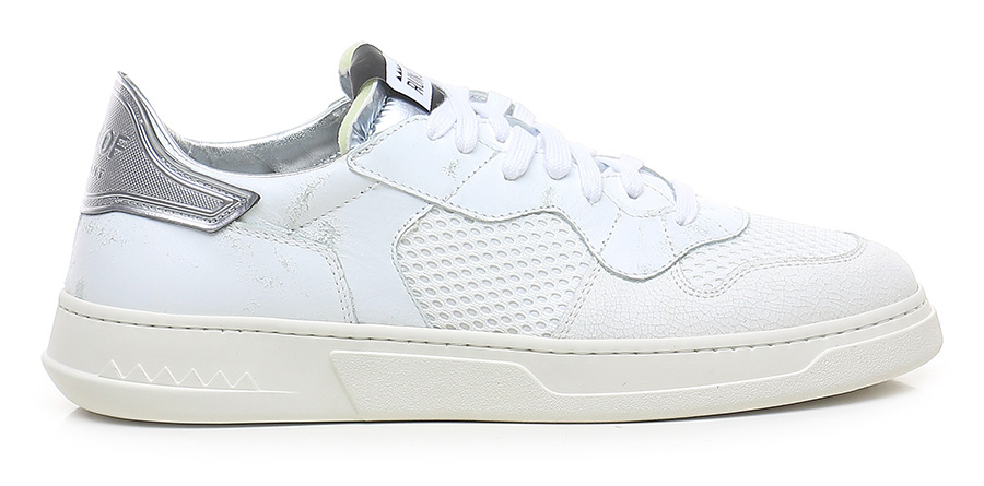 Sneaker in pelle effetto vintage, tessuto e pelle effetto crack con suola in gomma. Altezza tacco 35mm, platform 25mm con battuta 10mm.