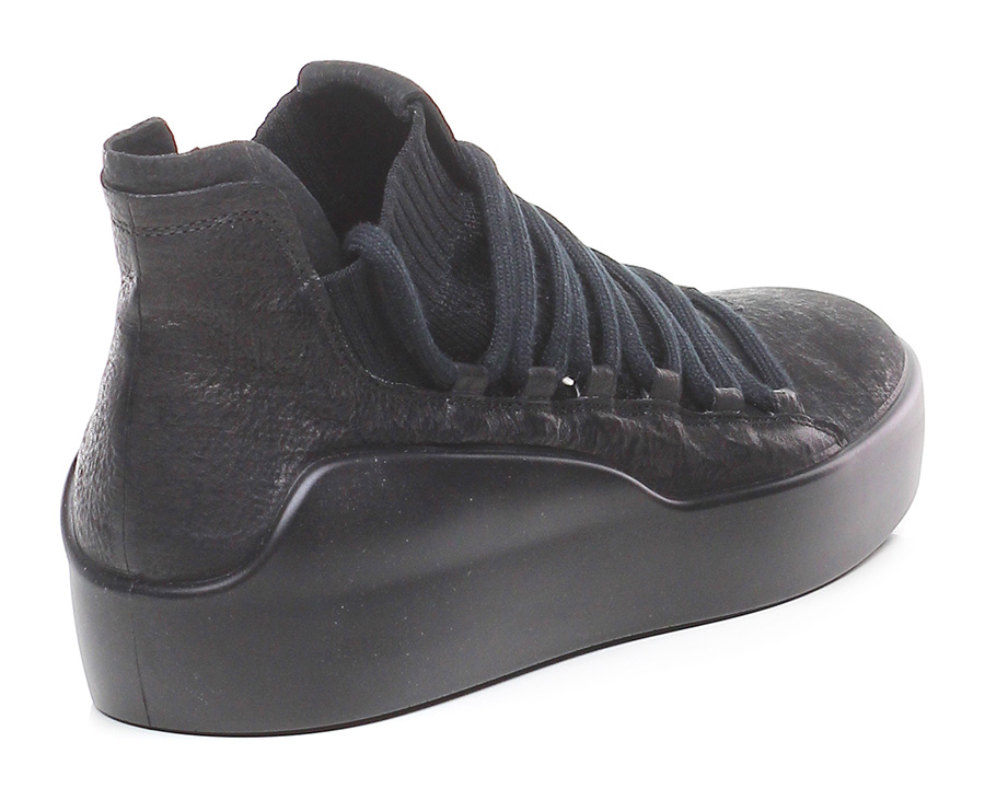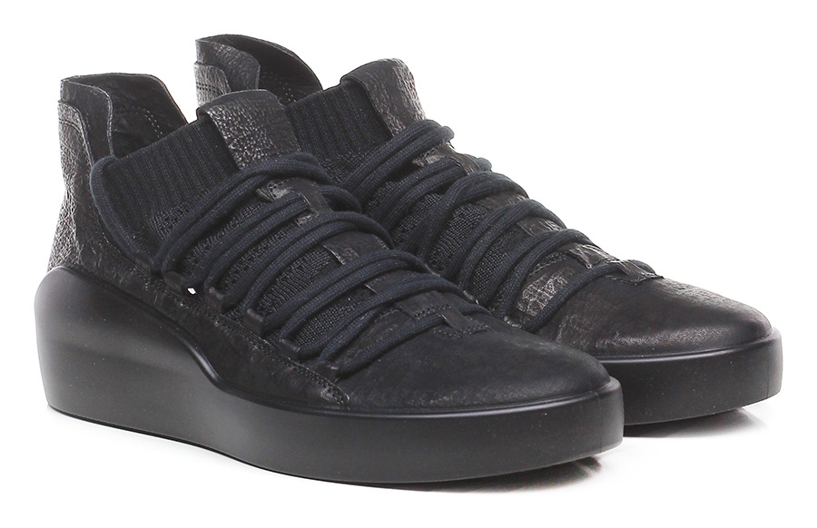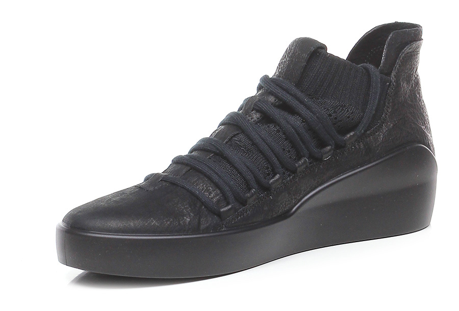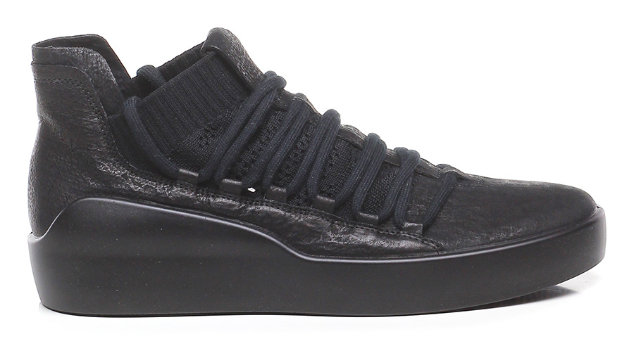 Sneaker in pelle effetto vintage e tessuto lavorato, suola in gomma. Tacco 40, platform 30 con battuta 10.