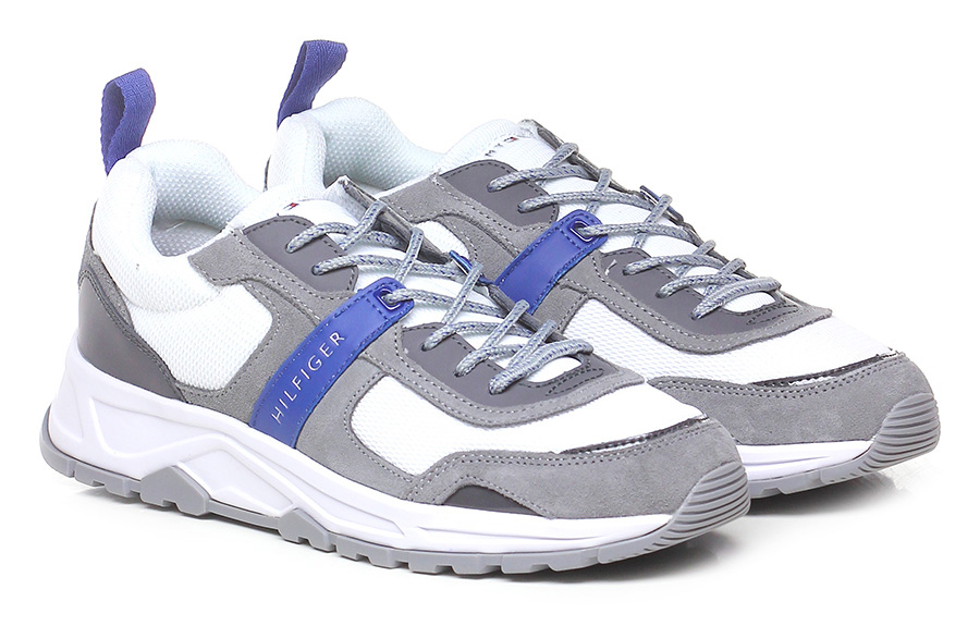 Sneaker in camoscio, pelle e tessuto, suola in gomma. Tacco 55, platform 30 con battuta 25.