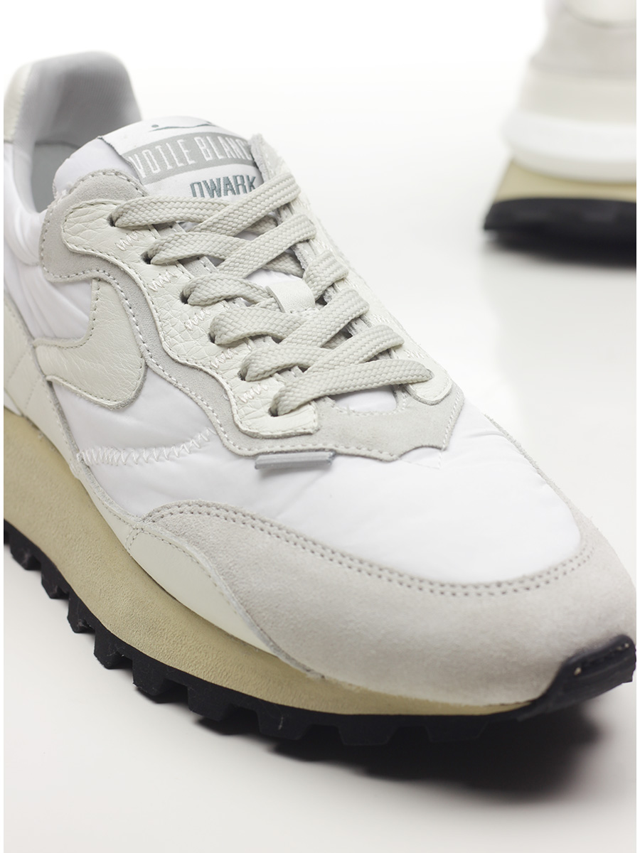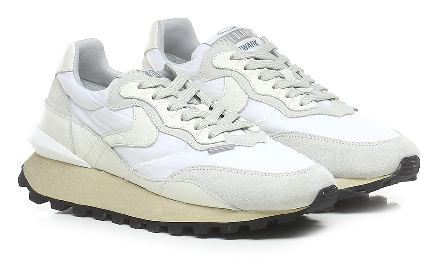 Sneaker in tessuto, camoscio e pelle con suola in gomma effetto vintage. Altezza tacco 40mm, platform 25mm con battuta 15mm.
