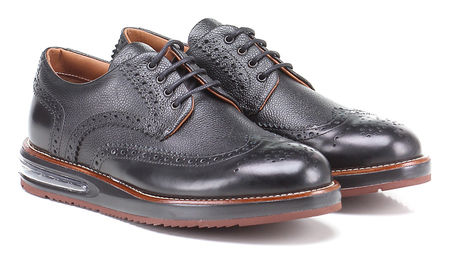 Stringata in pelle effetto spazzolato e pelle effetto martellato con lavorazione stile inglese e suola in gomma extra light. Tacco 35, platform 20 con battuta 15. Camera d'aria interno suola.