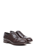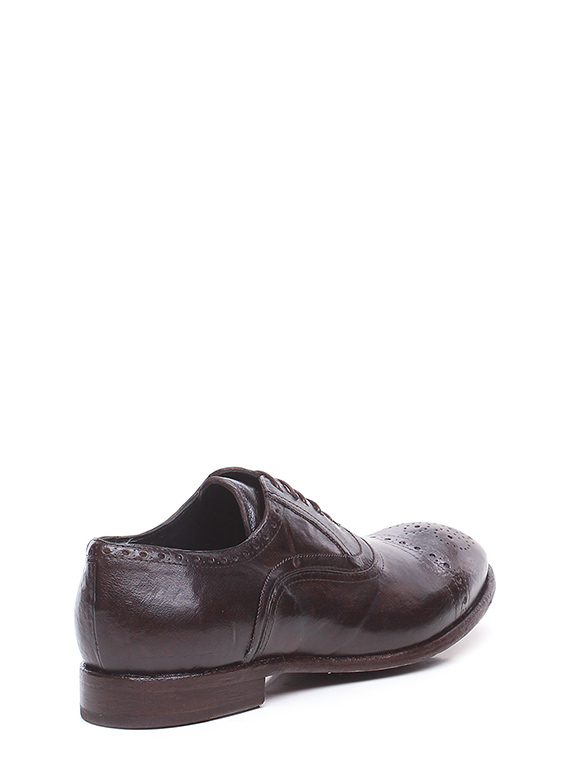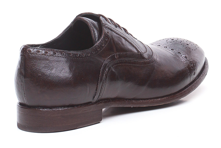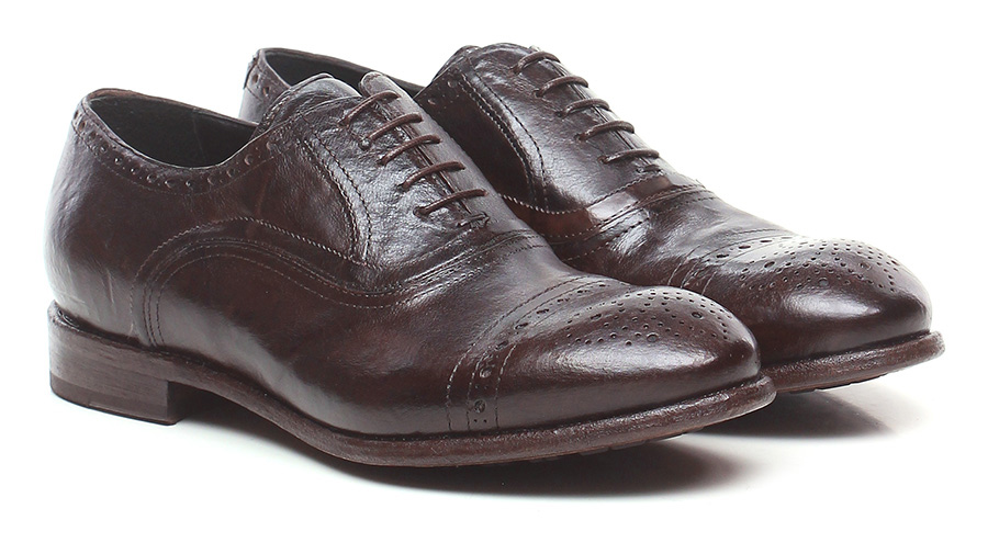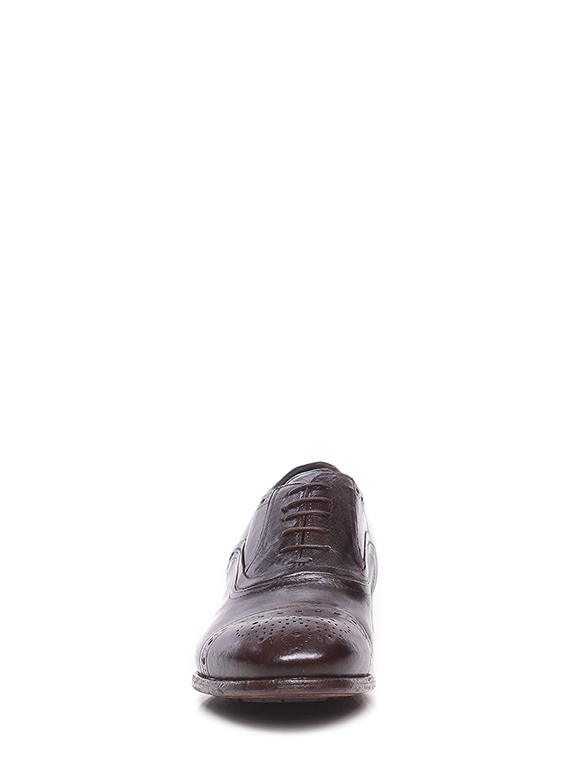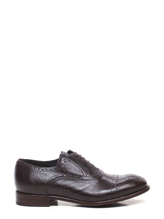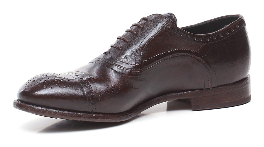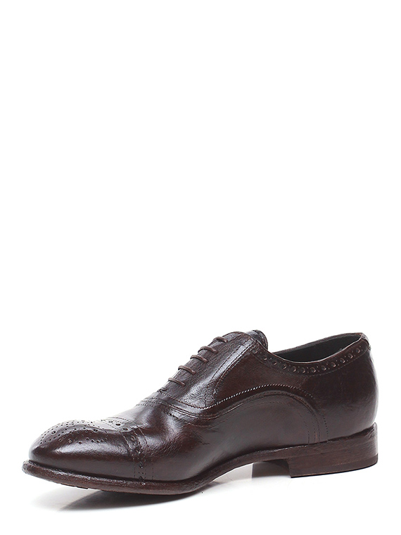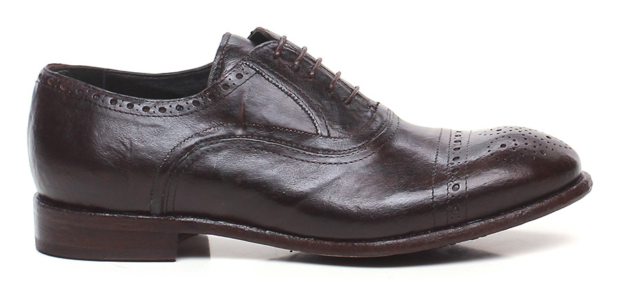Stringata in pelle vintage con suola in cuoio e gomma. Tacco 30, platform 15 con battuta 15.