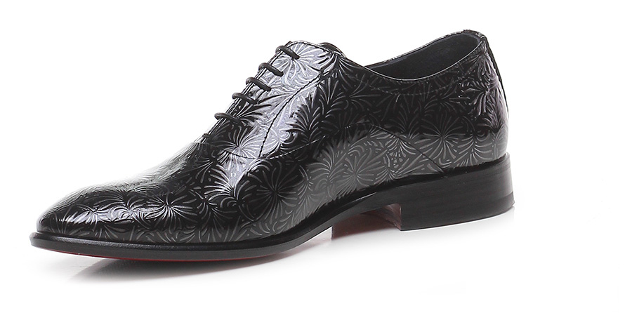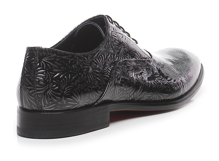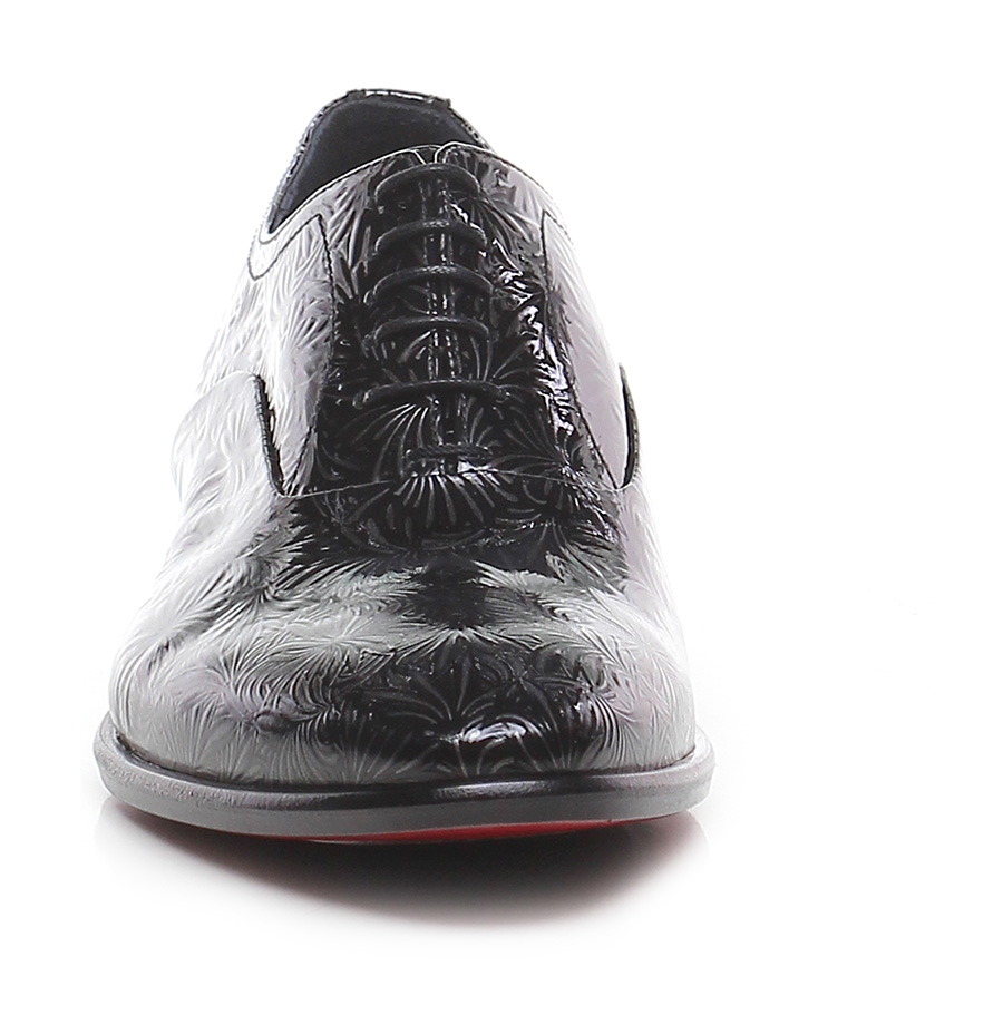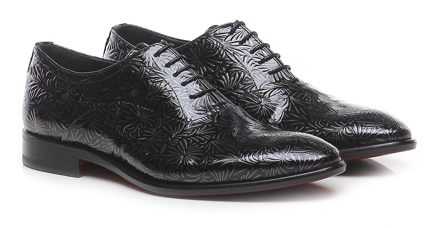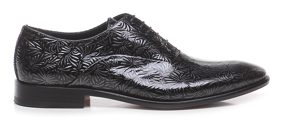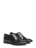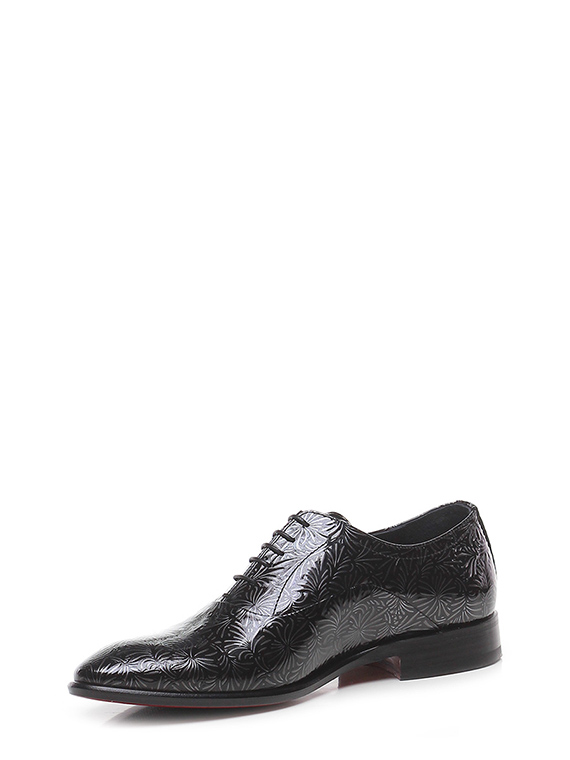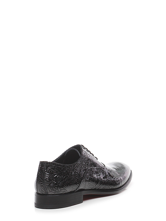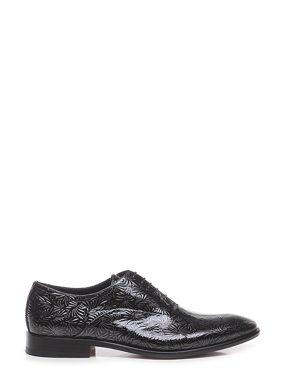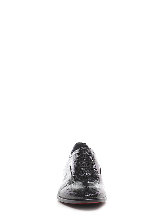 Stringata in pelle lavorata verniciata con suola in cuoio e gomma. Tacco 25.