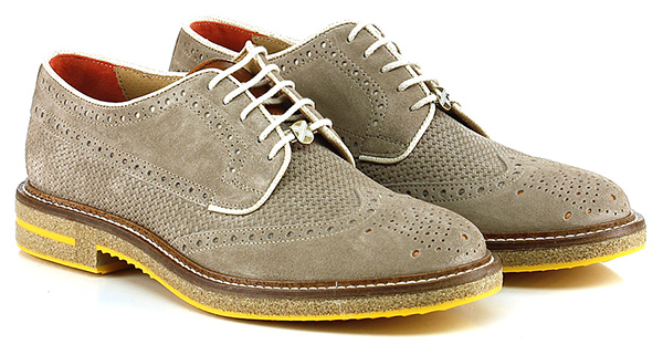 Stringata in camoscio con suola in gomma. Tacco 40, platform 20 con battuta 20. Lavorazione stile inglese.