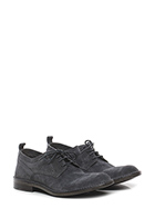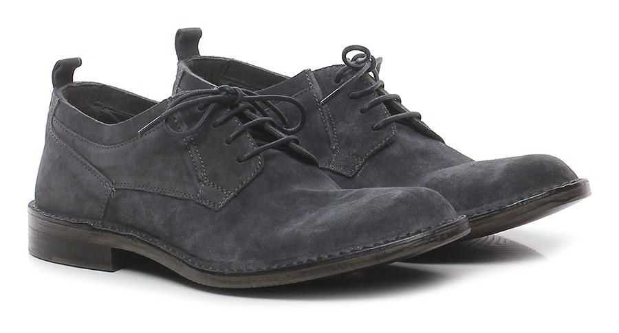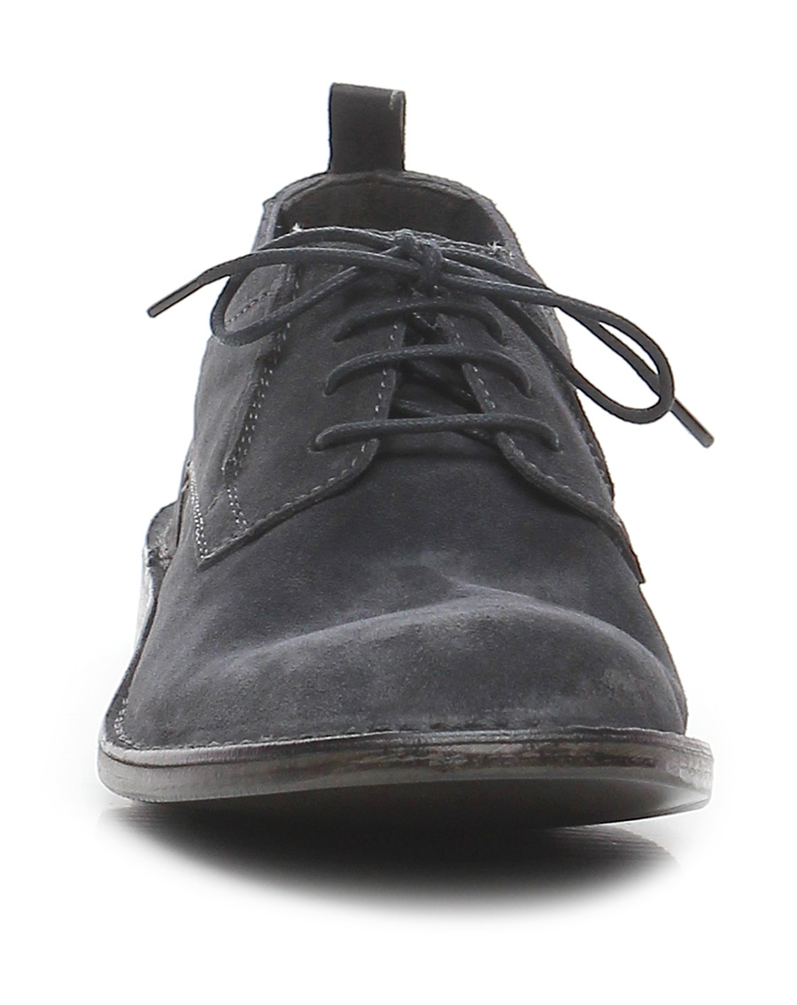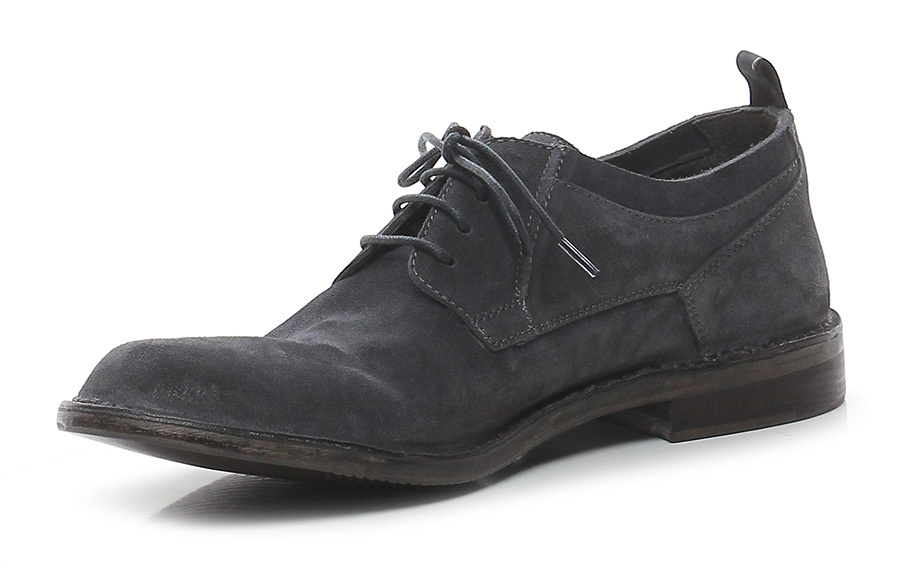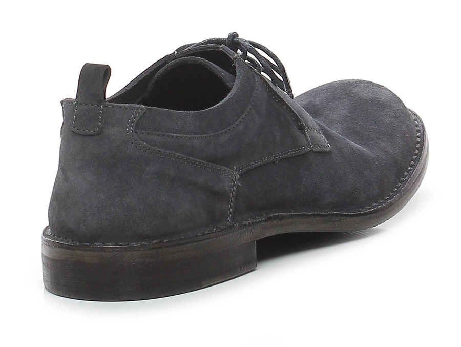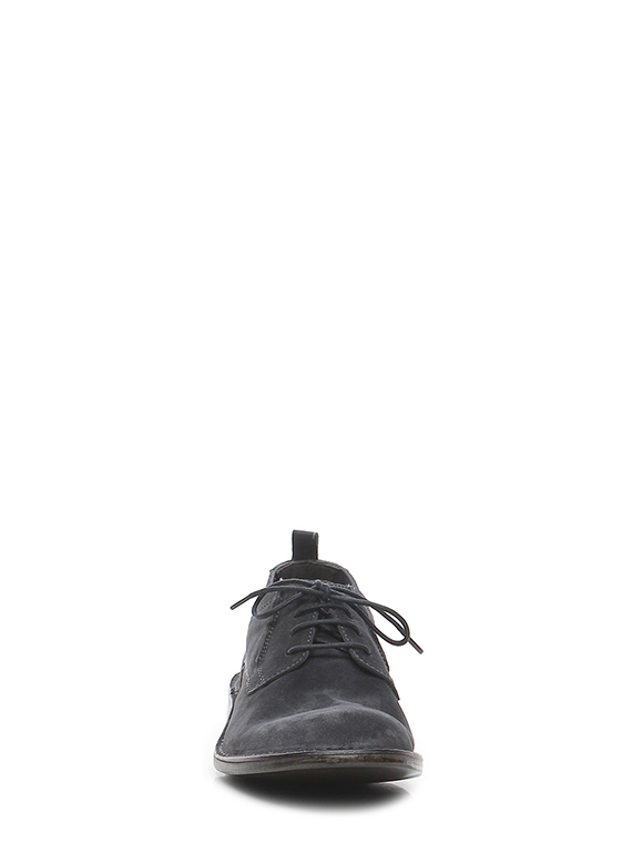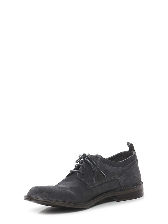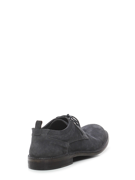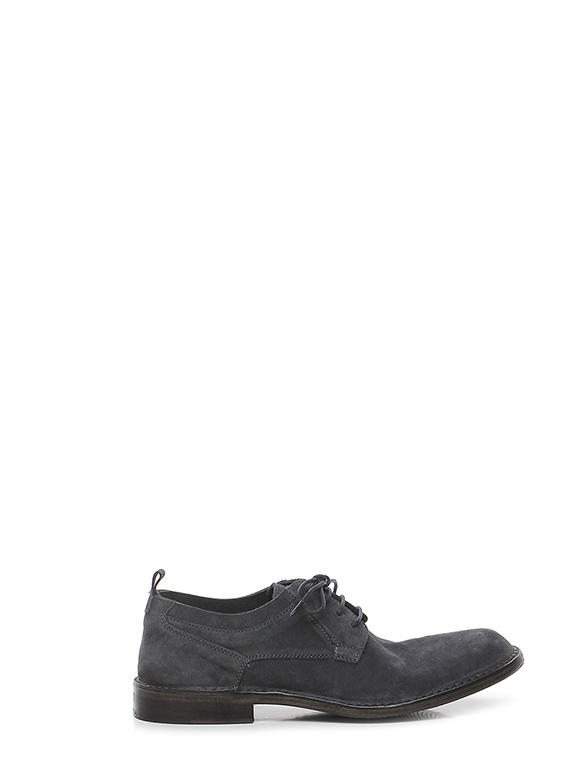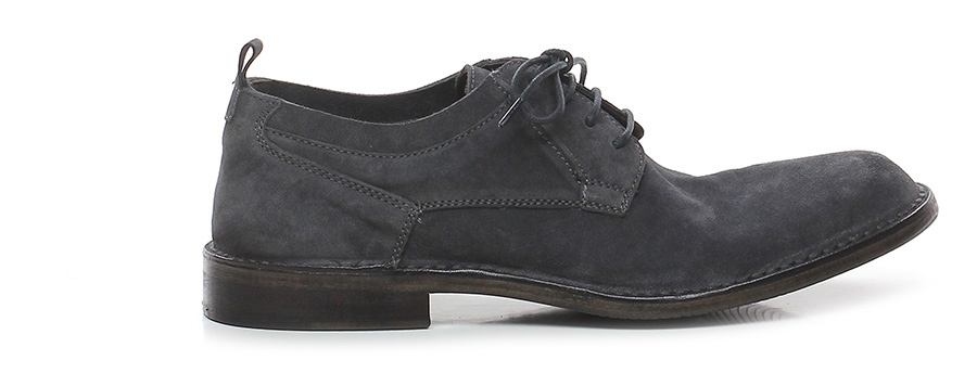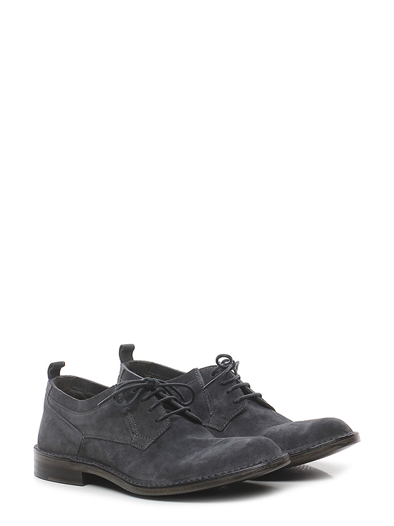 Stringata in camoscio effetto vintage, suola in cuoio. Tacco 25.