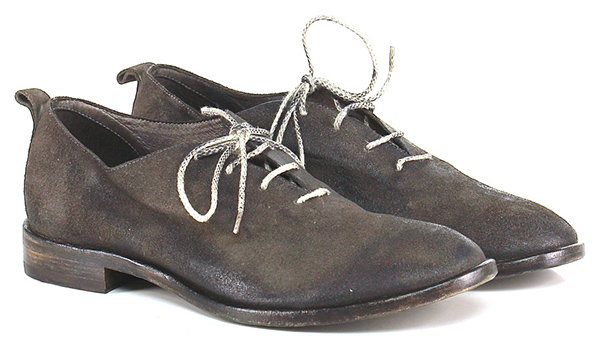 Stringata in crosta vintage con suola in cuoio, tacco 30.