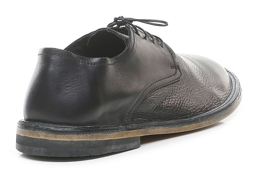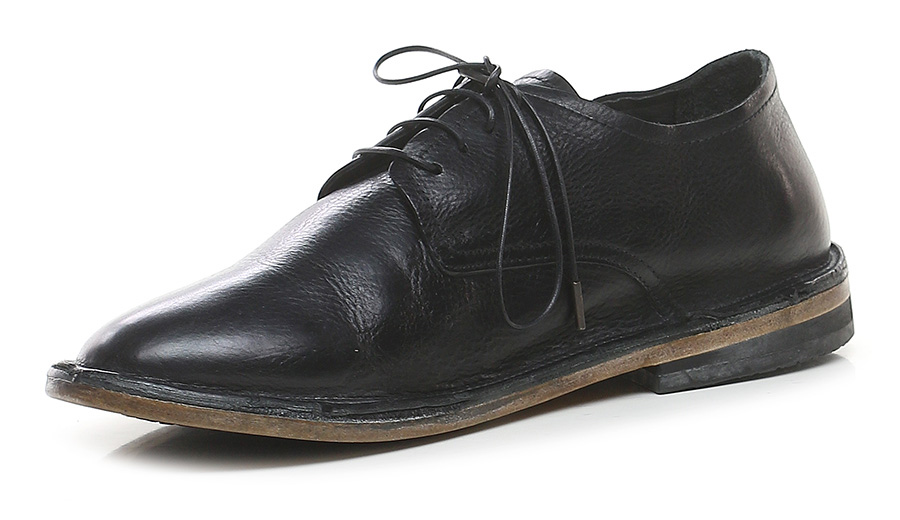 Stringata in pelle con effetto vintage. Suola in cuoio e gomma. Altezza tacco 25mm.