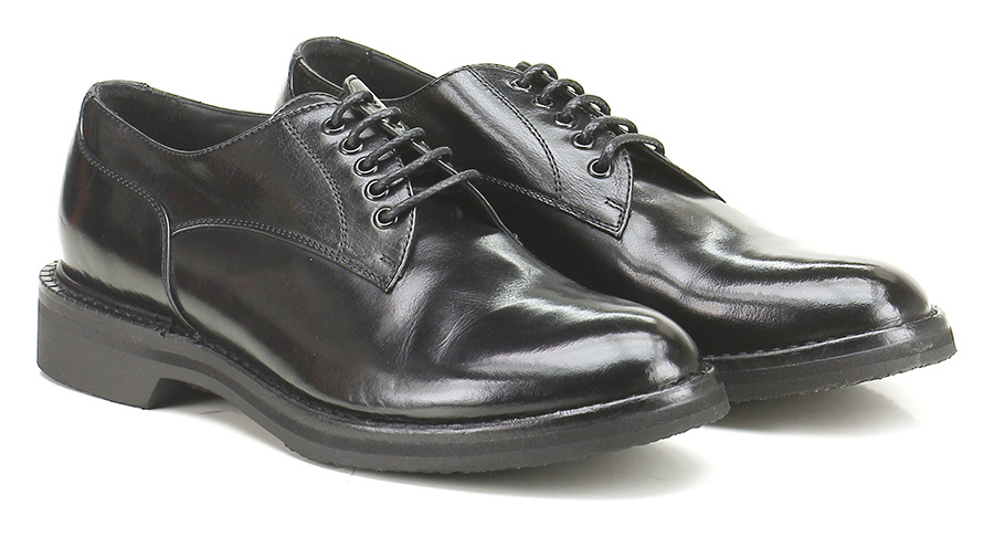 Stringata in pelle vintage con suola in gomma. Tacco 35, platform 20 con battuta 15.