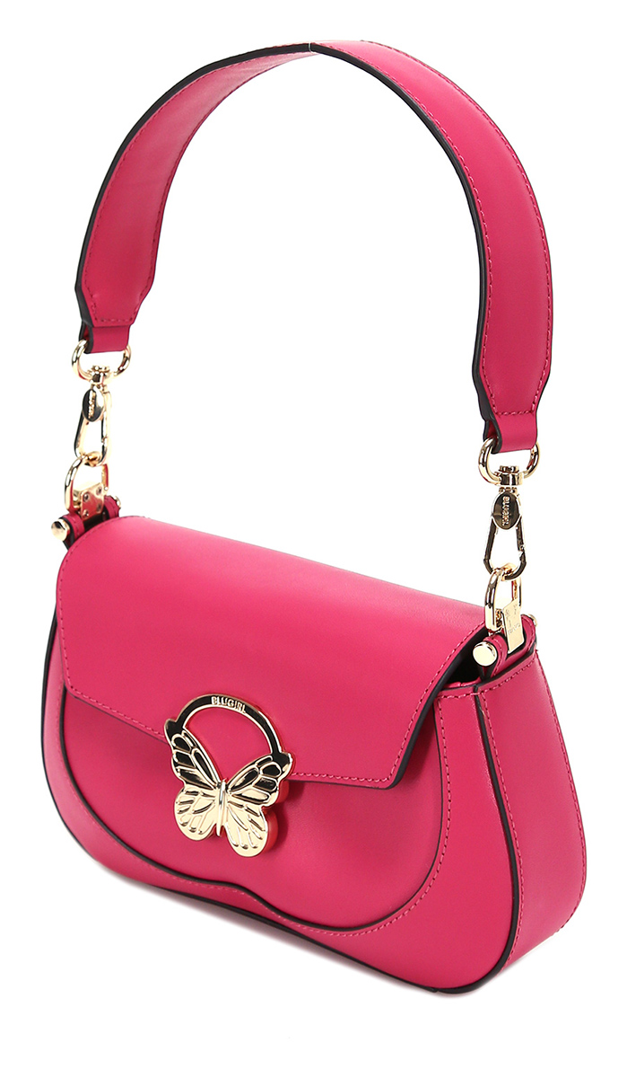 Borsa in pelle con bottone magnetico di chiusura. Tracola inclusa. Misure 24 x 13 cm.