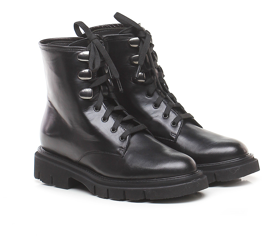 Polacco in pelle con zip laterale. Suola in gomma: altezza tacco 40mm, platform 25mm con battuta di 15mm.