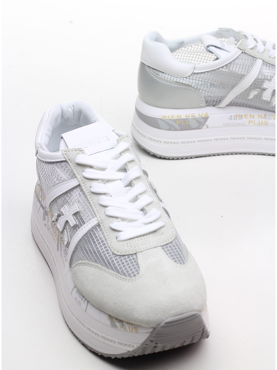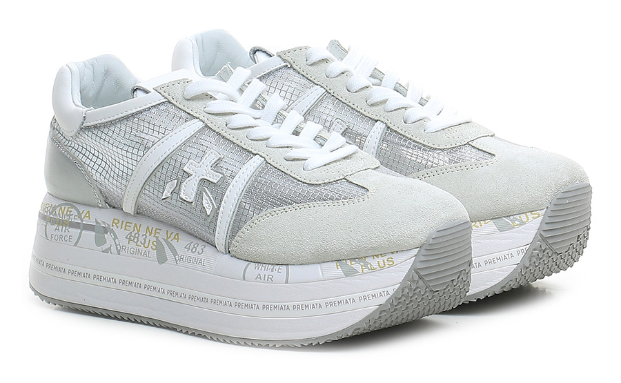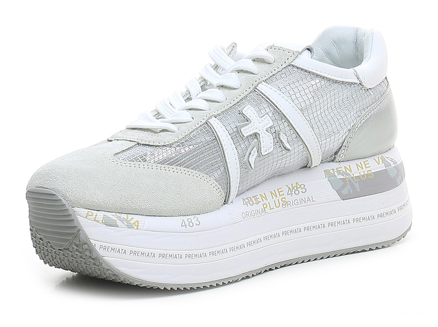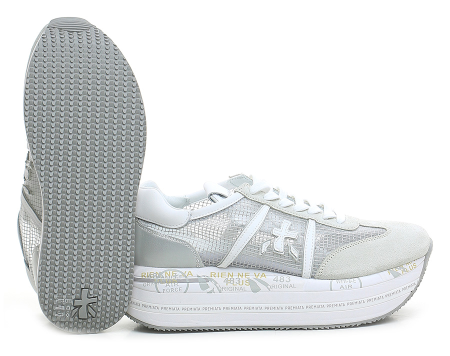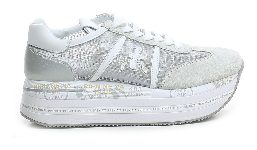 Premiata, marchio sinonimo di avanguardia e espressività, nasce con un solo obiettivo: essere il compagno di viaggio ideale di chi detesta i cliché e crede nella libertà. Le calzature Premiata, simbolo di creatività estrema, sono realizzate artigianalmente modellando la materia partendo dal bianco, che dona grande libertà di plasmare le forme. La scarpa Premiata, realizzata con grande abilità manuale e minuziosa cura dei dettagli, è caratterizzata da eleganza, comodità e da un design inconfondibile.