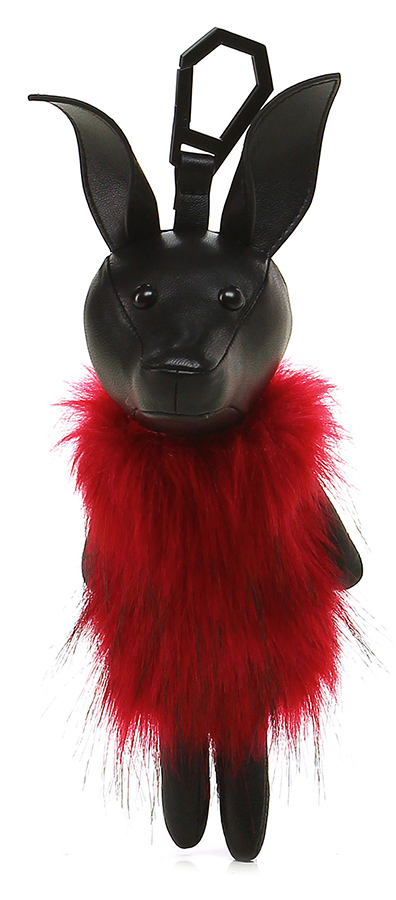 Portachiavi in pelle e faux fur con moschettone. Misure 10 x 24 cm.