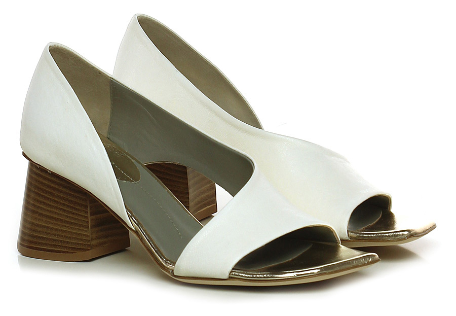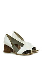Scarpa con tacco open toe in pelle vintage con suola in cuoio. Tacco 65.